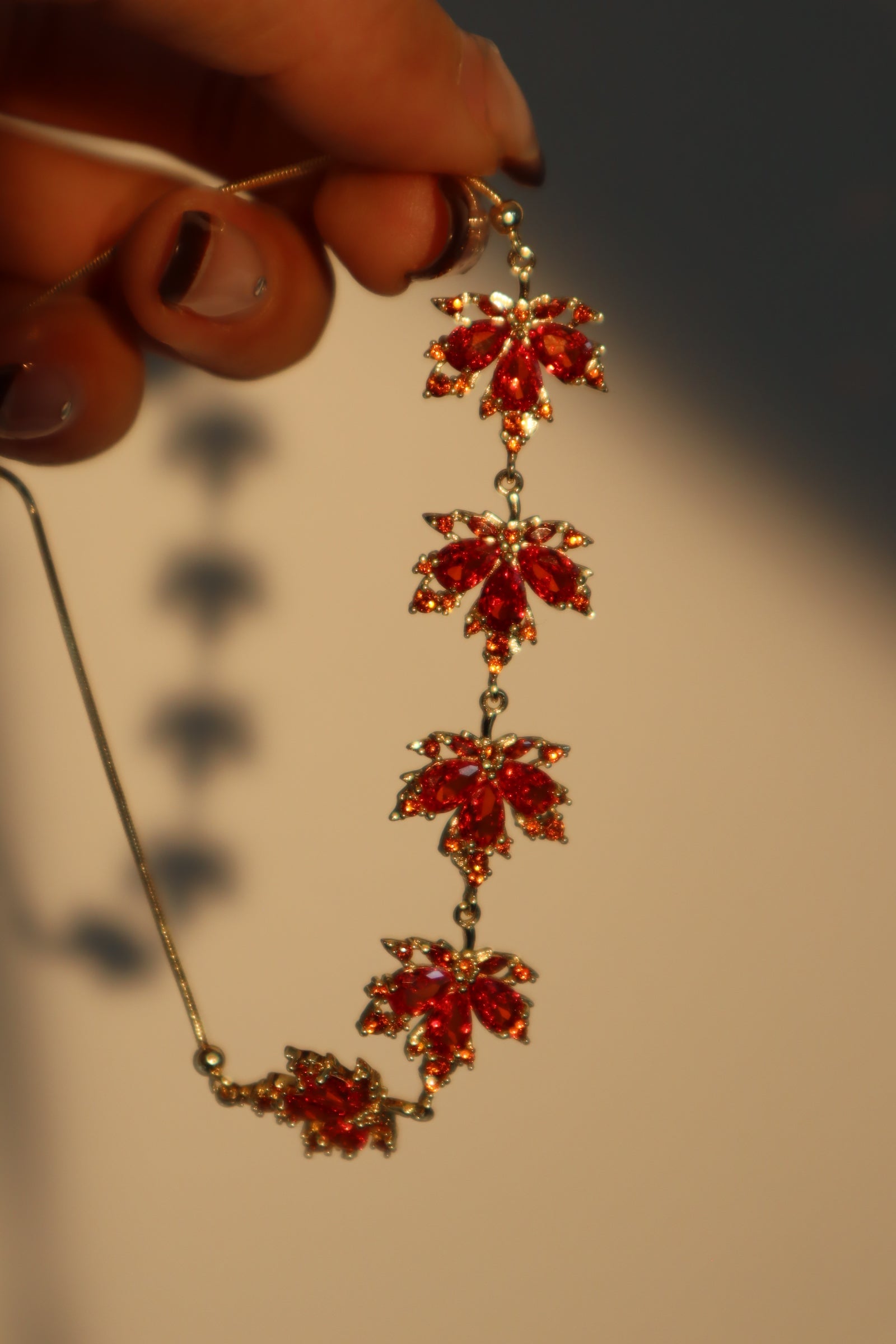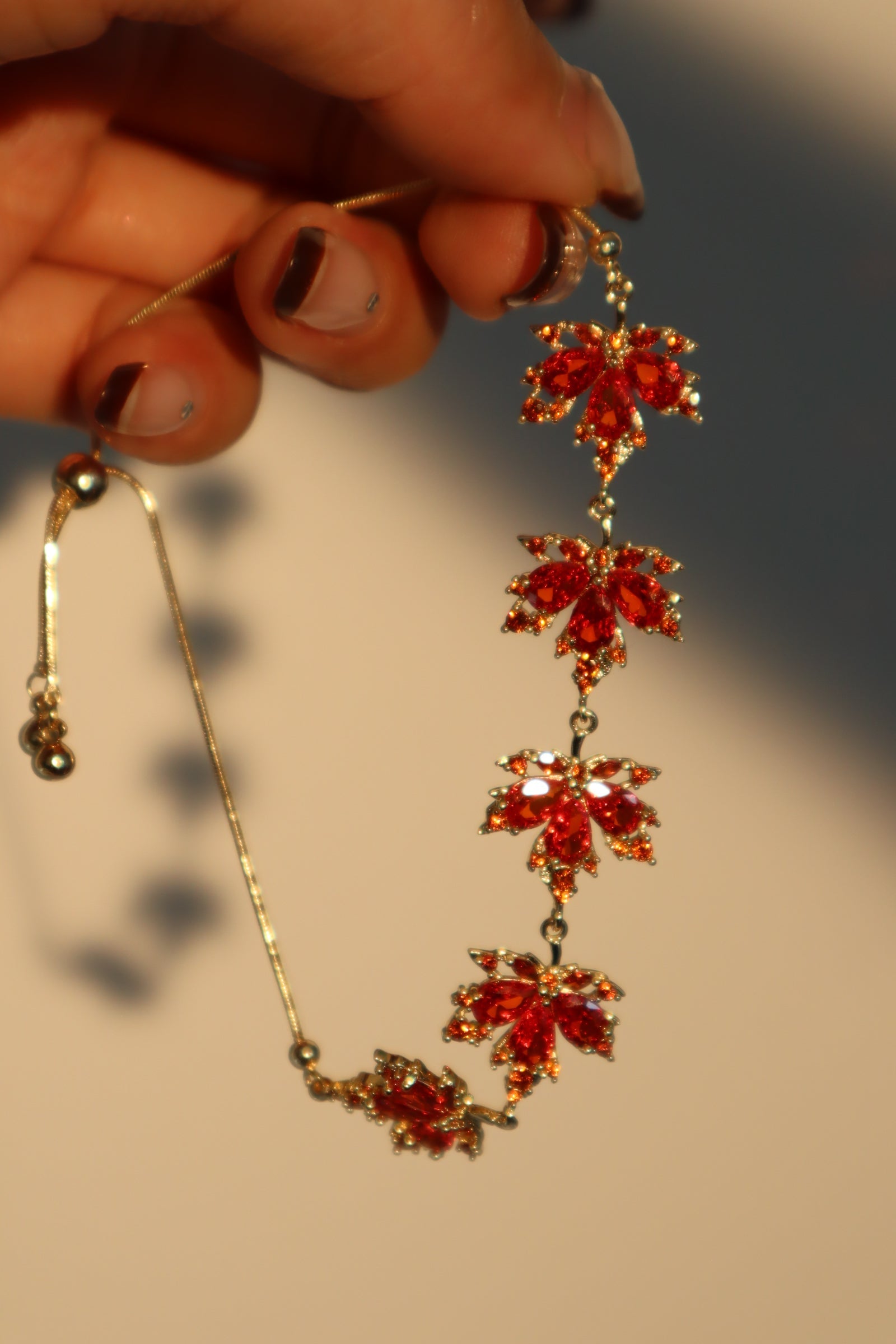 Flicker goodbye to dullness and stand out in our 14K Real Gold Plated Multi Maple Leaves Bracelet. With the proper lighting, the zirconia red gemstones add a pop of shine to your ensemble. This unique bracelet makes your outfit stand out and is also a great gift for her or him.