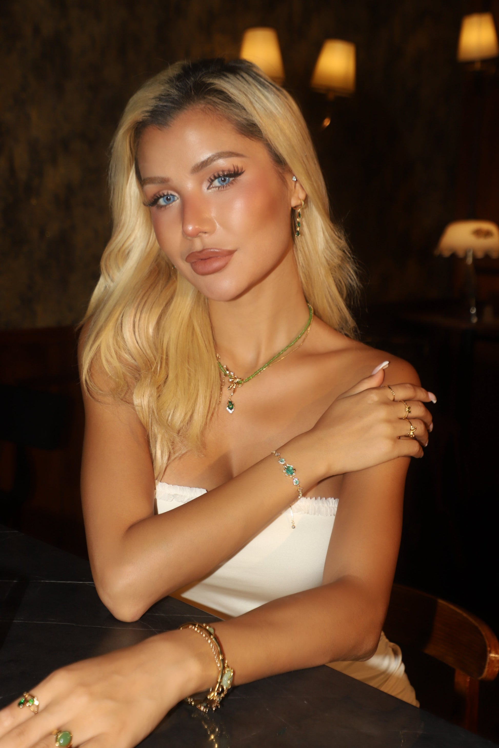 - 14K real gold plated + high quality zirconia lake blue gemstones + zirconia diamonds