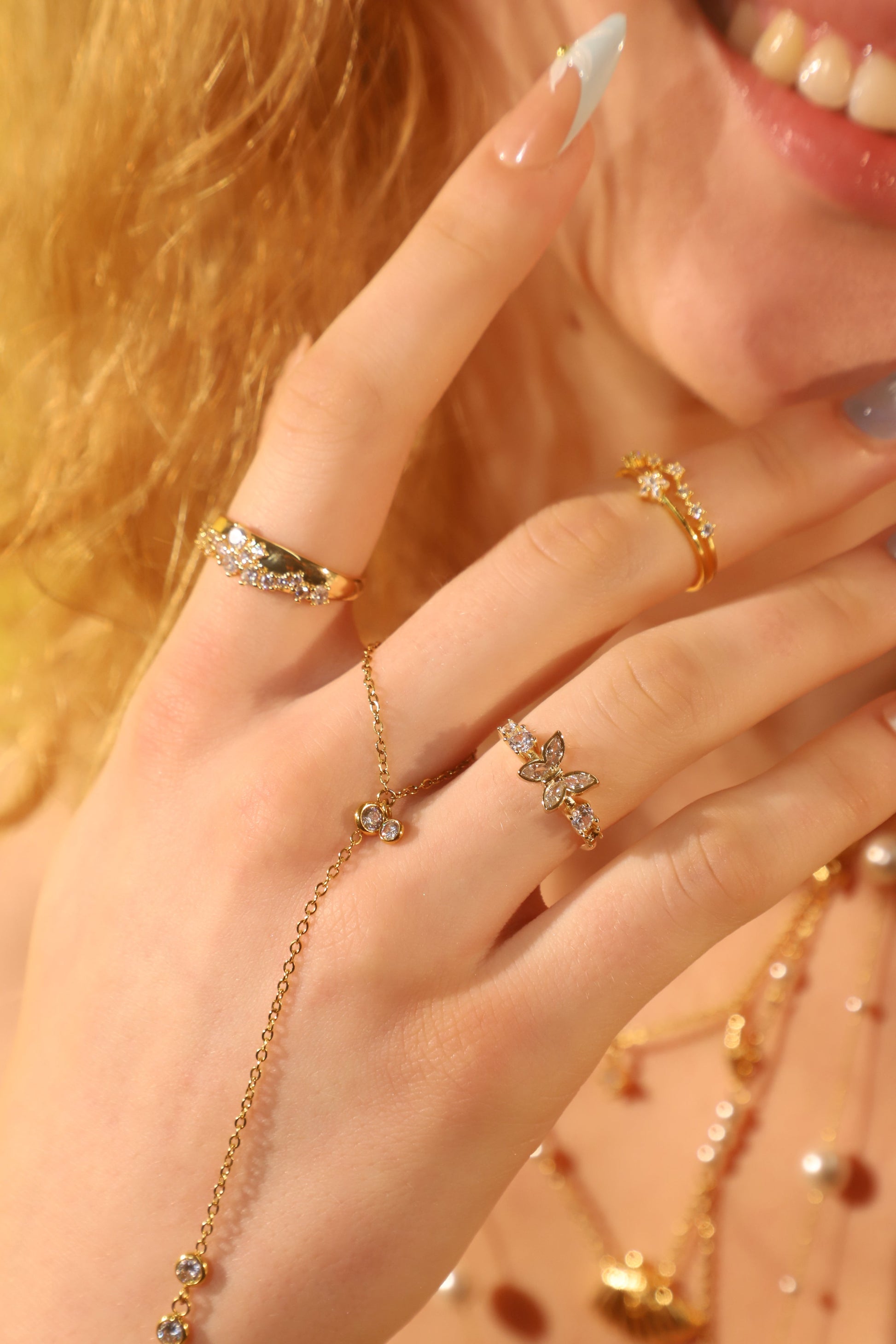 18K Gold Stainless Steel Diamond Hand Chain Bracelet