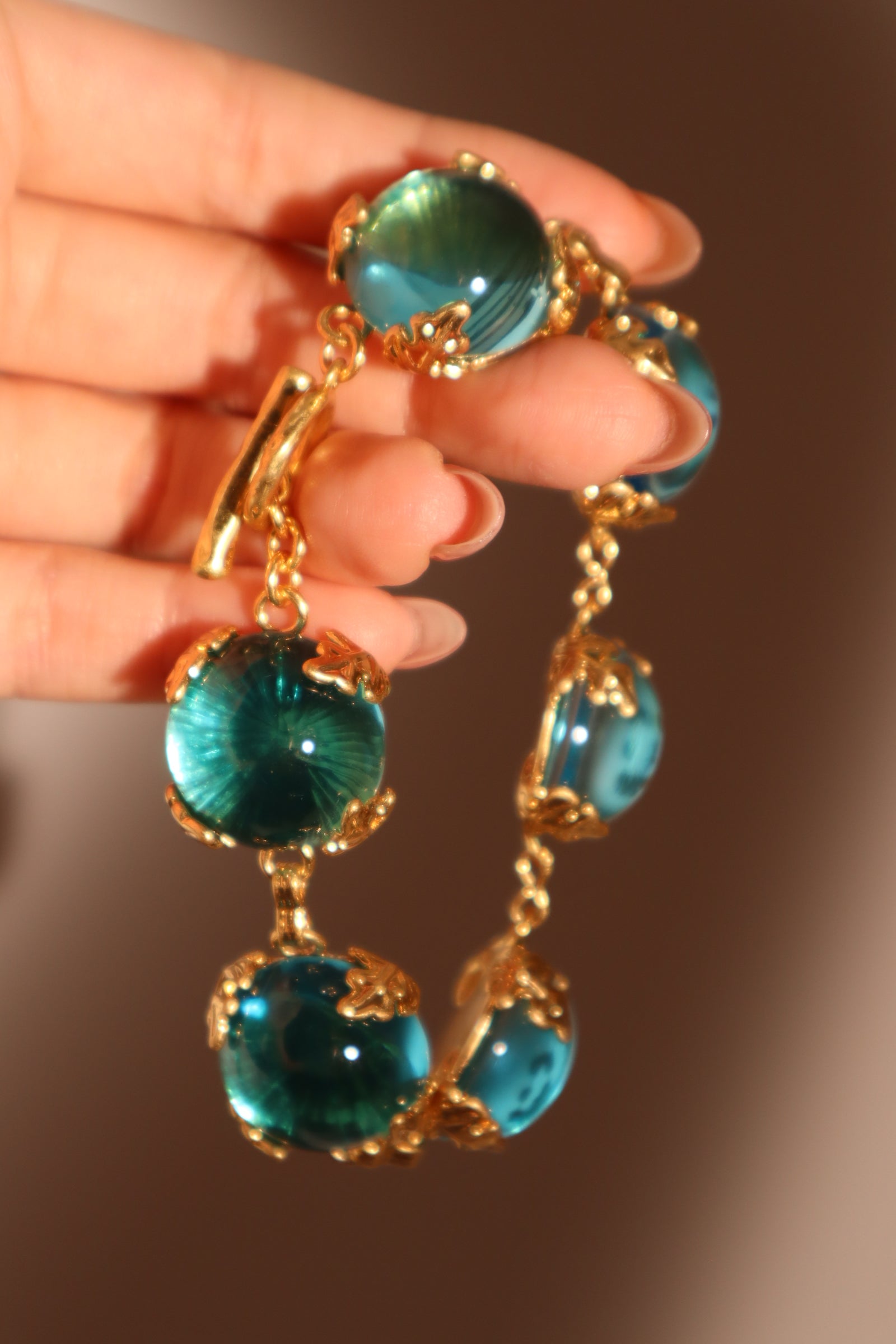 Flicker goodbye to dullness and stand out in our Real Gold Plated Blue Crystals Bracelet. With the proper lighting, the swarovski crystals add a pop of shine to your ensemble. This unique bracelet makes your outfit stand out and is also a great gift for her or him.
