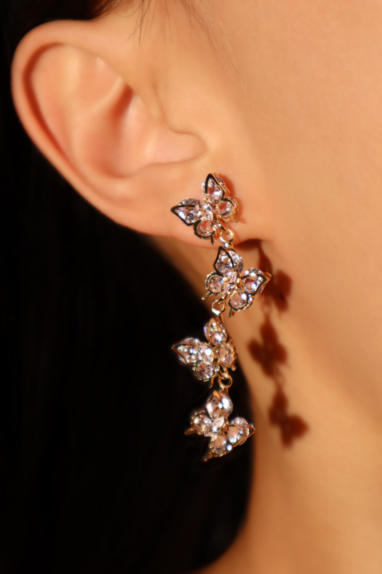 Our 14K Real Gold Plated Diamond Butterfly Dangle Earrings are ethereal. This pair of earrings is adorned with high quality zirconia diamonds that sparkle and shine angelically. When you can’t decide on a look, match these earrings with your outfit to be your saving grace!