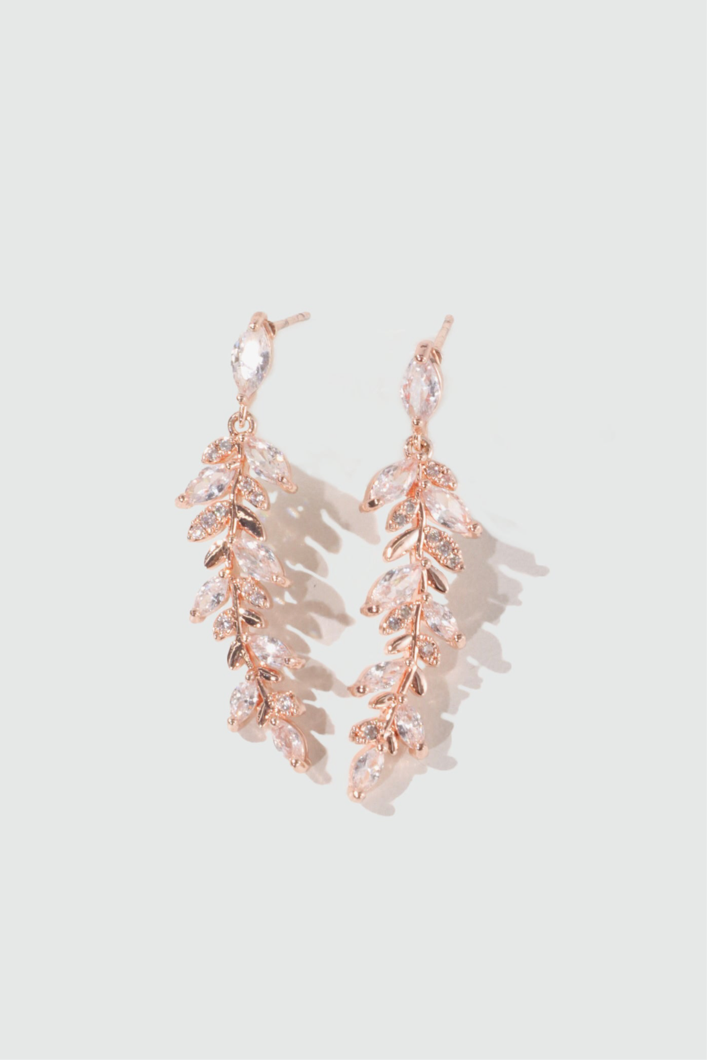 Our 14K Rose Gold Plated Diamond Leaf Earrings are ethereal. This pair of earrings is adorned with high quality zirconia diamonds that sparkle and shine angelically. When you can’t decide on a look, match these earrings with your outfit to be your saving grace!