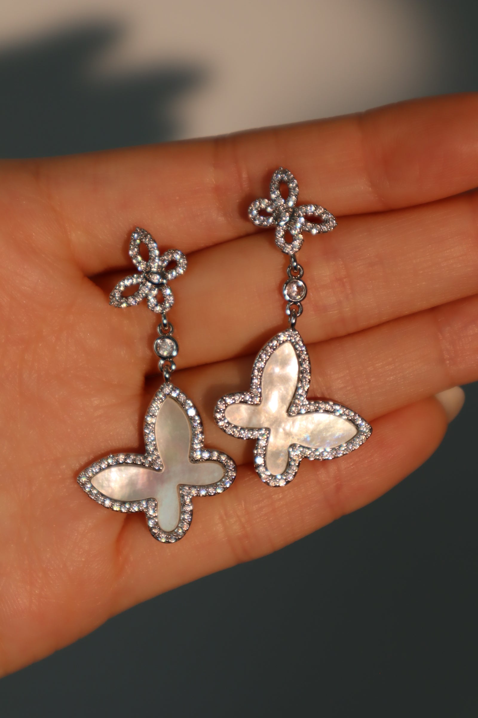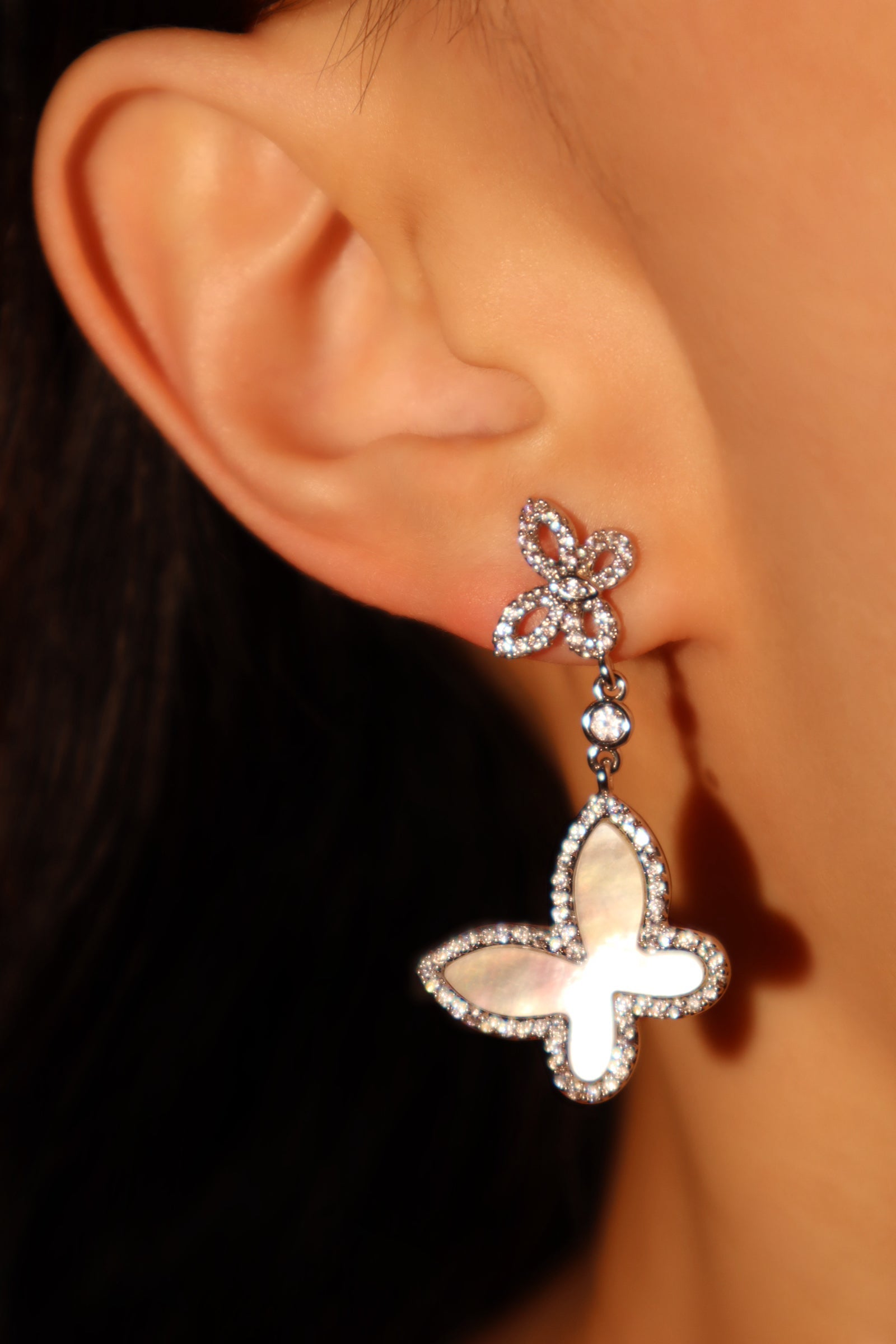 Our Diamond Shell Butterfly Earrings are ethereal. This pair of earrings is adorned with high quality shell pearls that sparkle and shine angelically. When you can’t decide on a look, match these earrings with your outfit to be your saving grace!