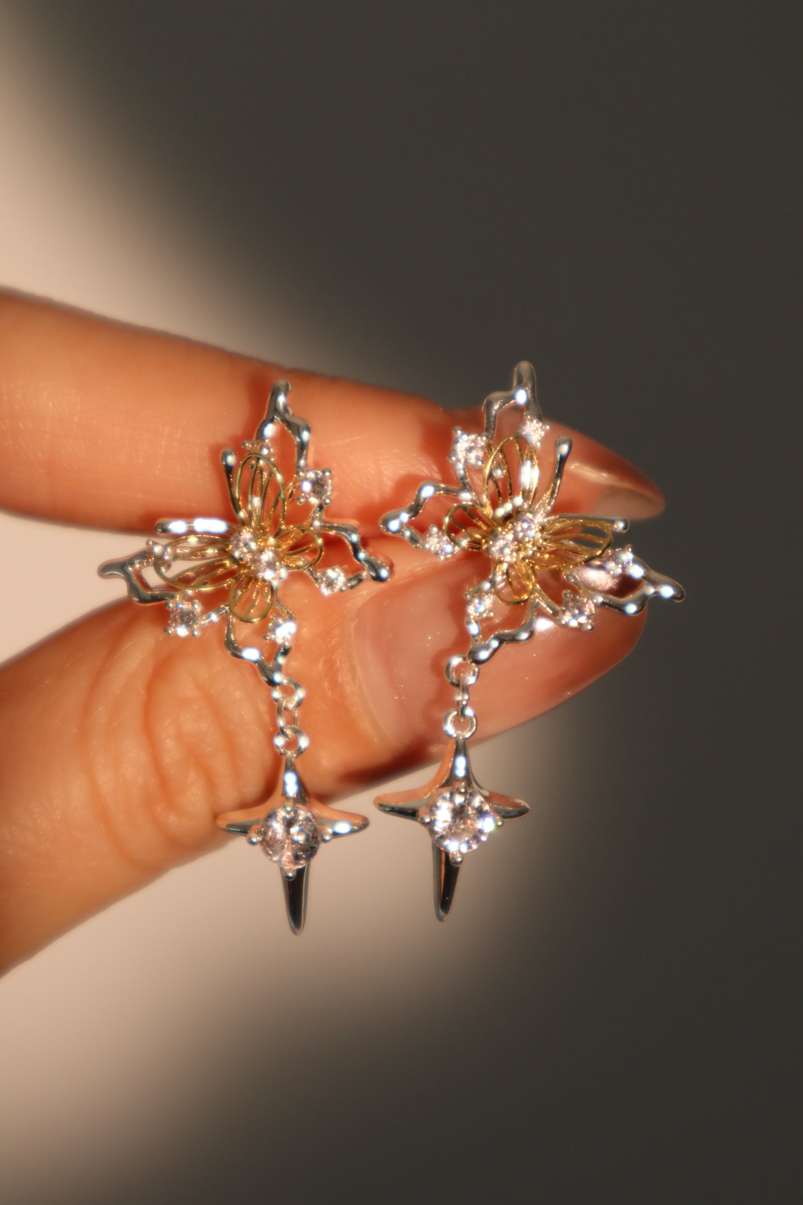Our Mix Metal Butterfly Star Earrings are ethereal. This pair of earrings is adorned with high quality zirconia diamonds that sparkle and shine angelically. When you can’t decide on a look, match these earrings with your outfit to be your saving grace!