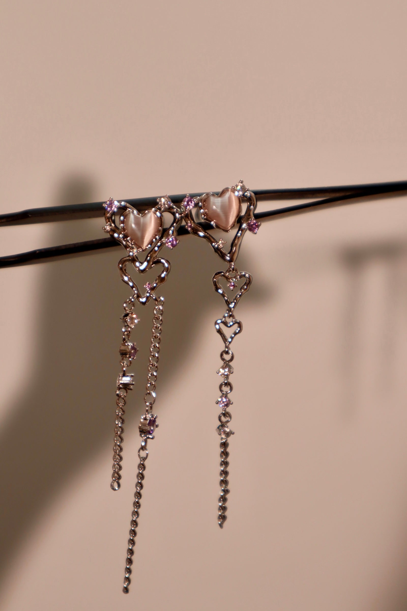 Platinum Plated Pink Opal Heart Dangle Earrings