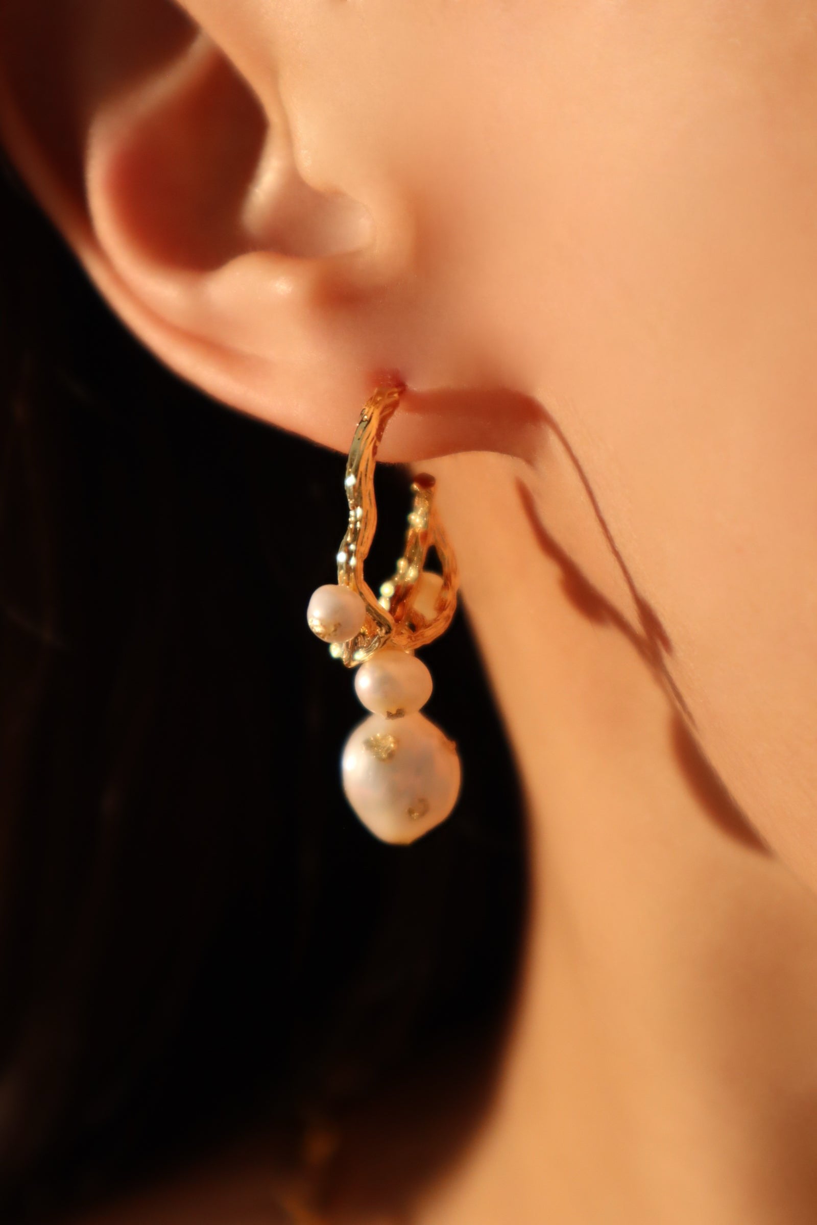 Our 18K Real Gold Foil Pearl Hoop Earrings are ethereal. This pair of earrings is adorned with high quality freshwater pearls that sparkle and shine angelically. When you can’t decide on a look, match these earrings with your outfit to be your saving grace!
