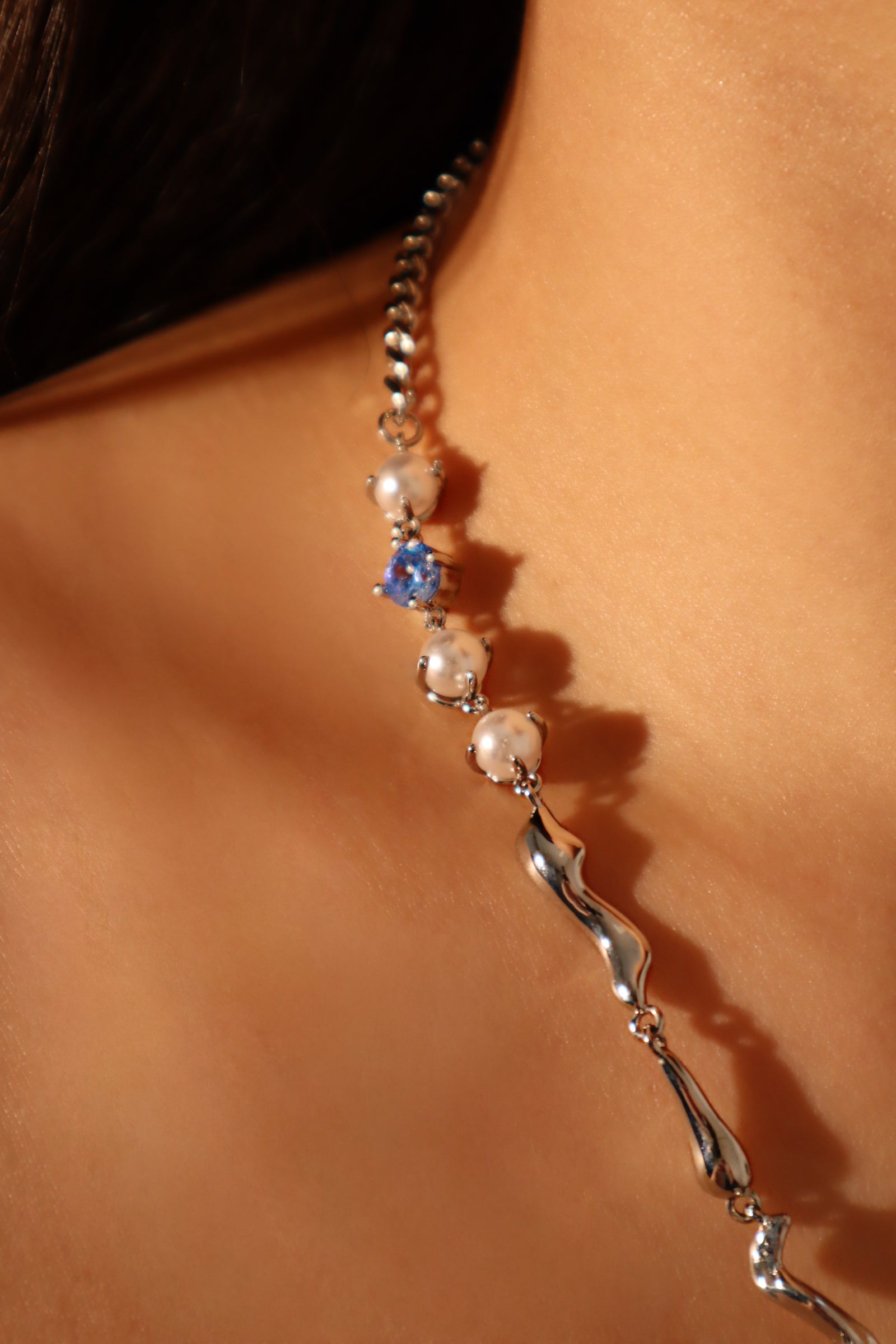 Flicker goodbye to dull and stand out in our Platinum Plated Blue Shell Necklace. With the right lighting, our zirconia blue gemstones add a subtle pop of shine to your ensemble. This dainty, simple necklace makes the perfect layering chain and an even better gift for her.