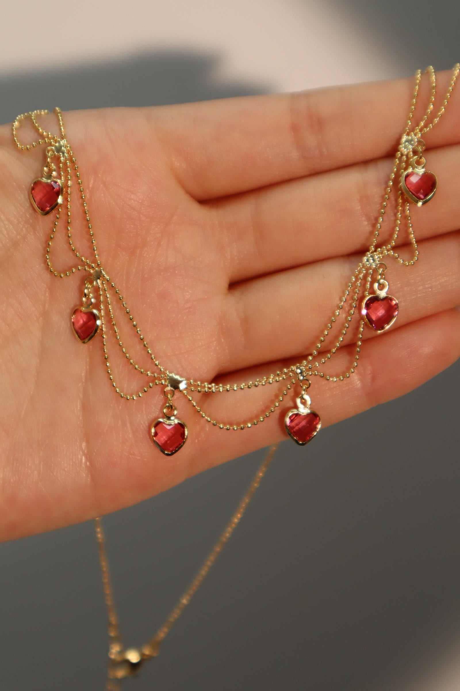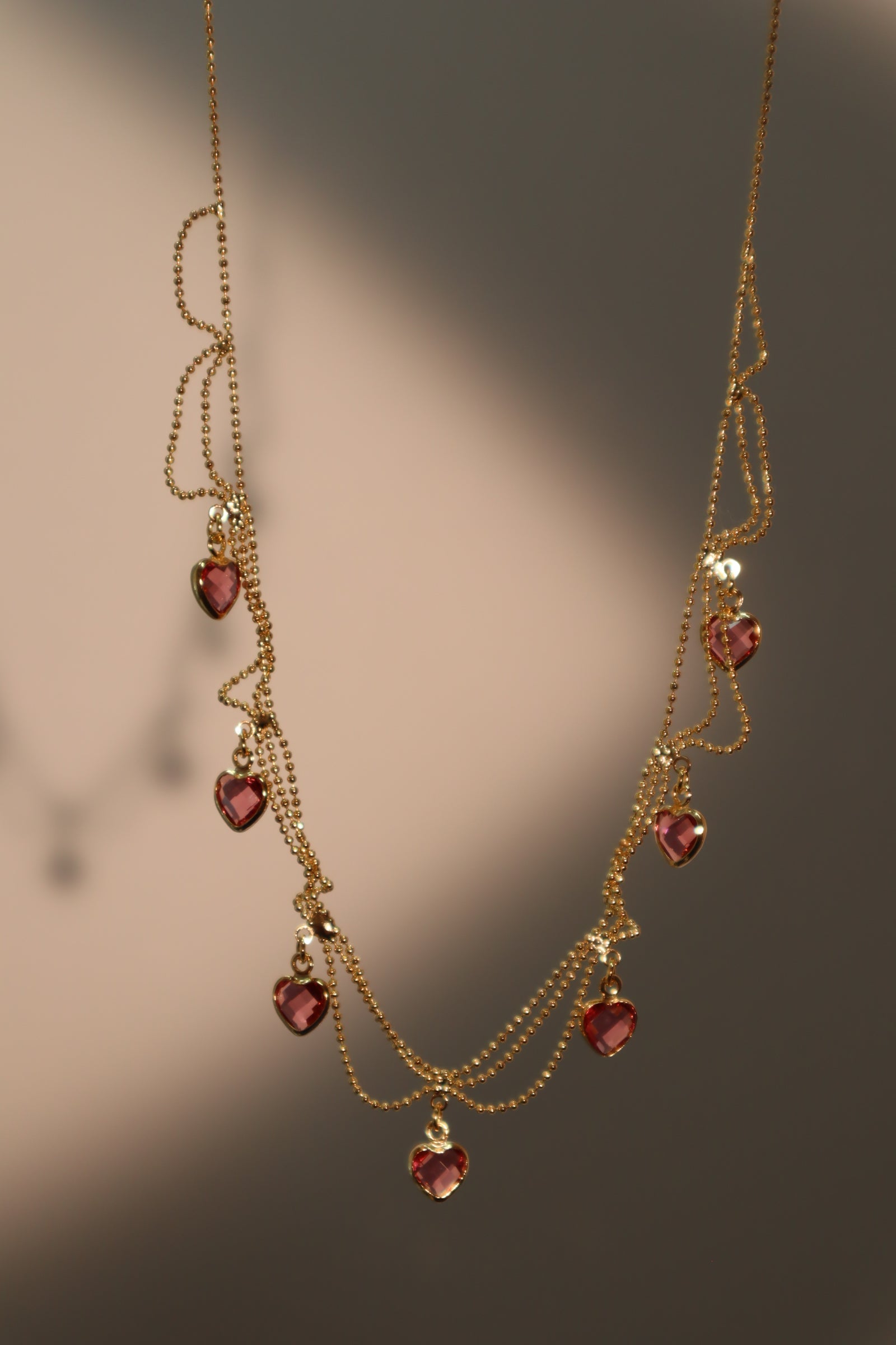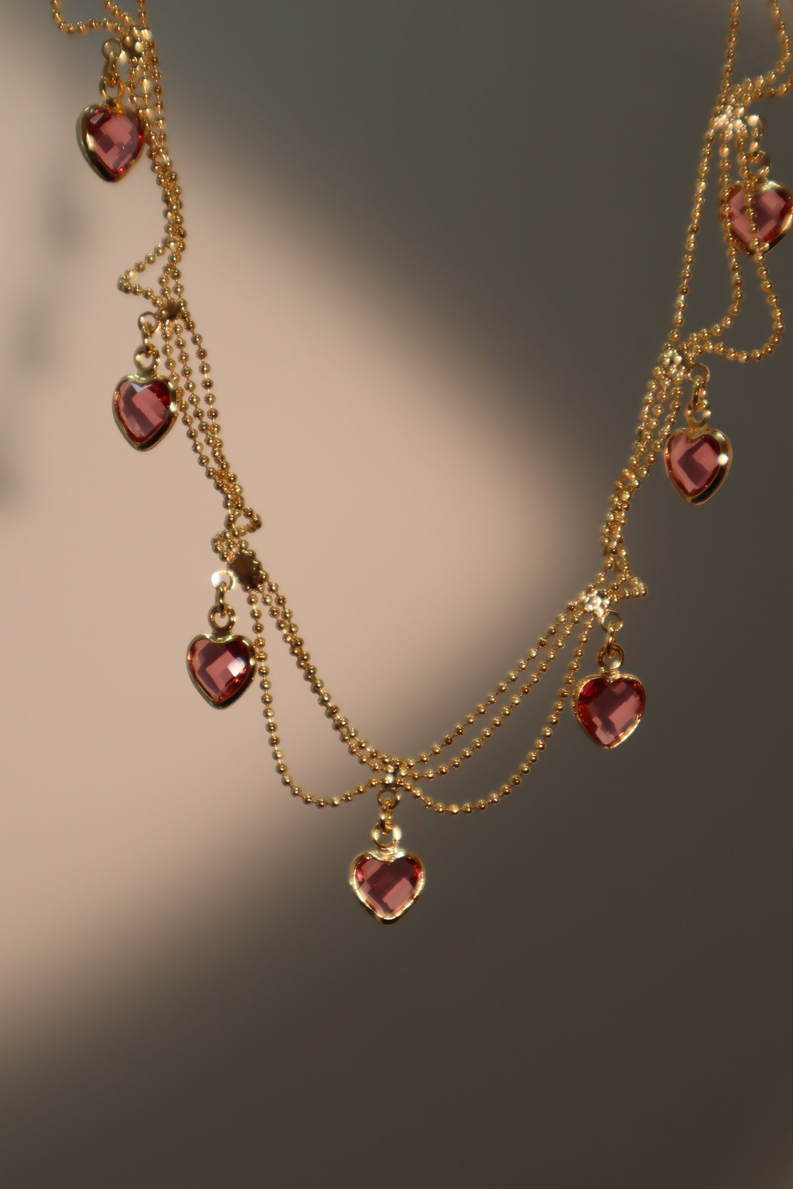 Flicker goodbye to dullness and stand out in our 14K Real Gold Plated Double Layer Pink Heart Necklace. With the proper lighting, the zirconia pink gemstones add a pop of shine to your ensemble. This unique necklace makes your outfit stand out and is also a great gift for her or him.