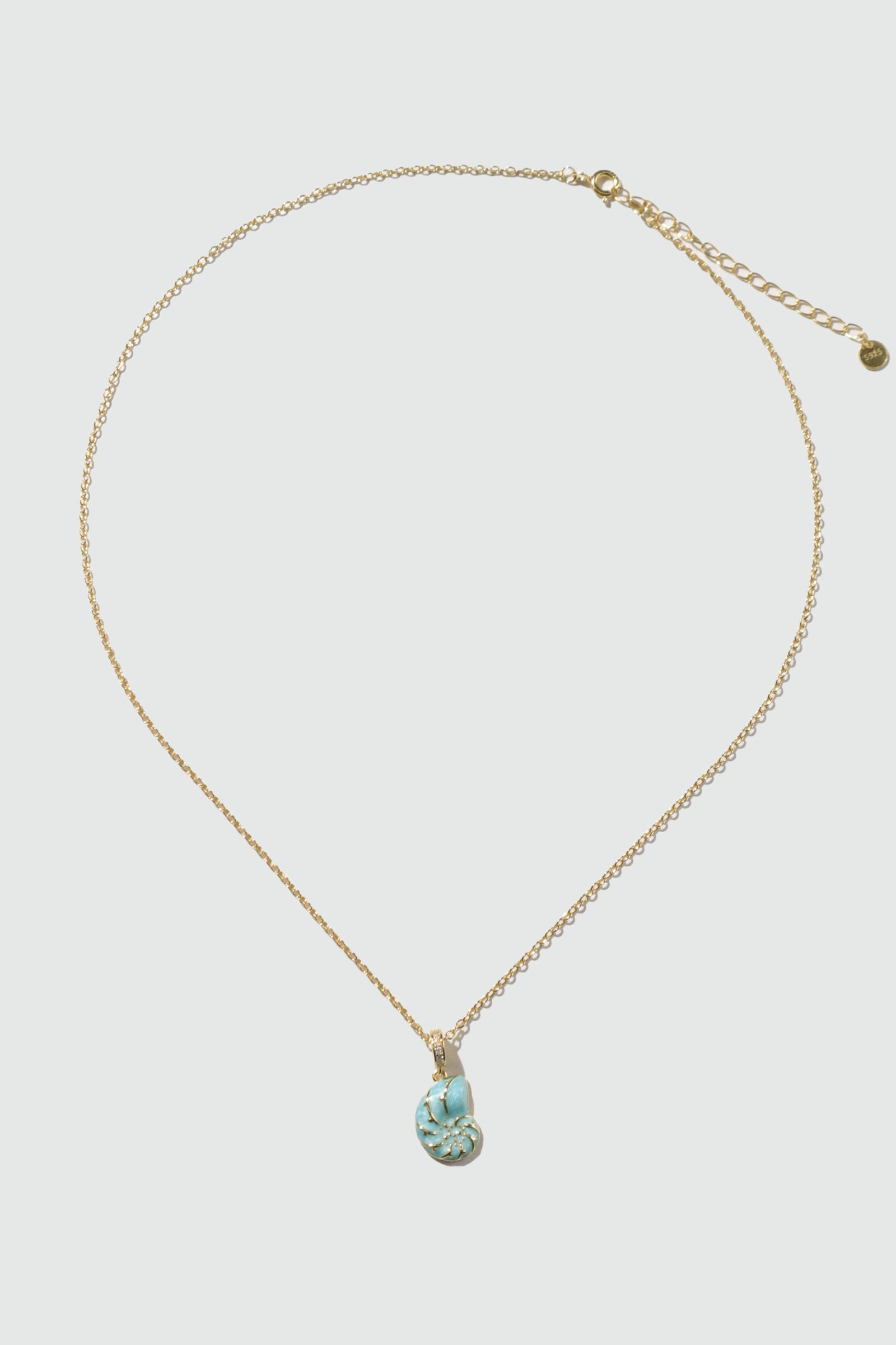 Flicker goodbye to dullness and stand out in our 18K Gold Vermeil Blue Conch Necklace. With the proper lighting, the zirconia diamonds add a pop of shine to your ensemble. This unique necklace makes your outfit stand out and is also a great gift for her or him.