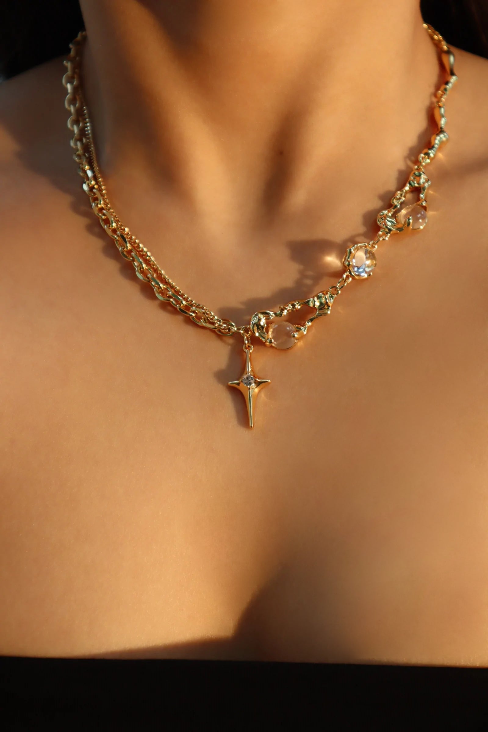 Flicker goodbye to dull and stand out in 18K Real Gold Plated Moonlight Star Necklace. With the right lighting, the zirconia moonstones add a subtle pop of shine to your ensemble. This dainty, simple necklace makes the perfect layering chain and an even better gift for her.