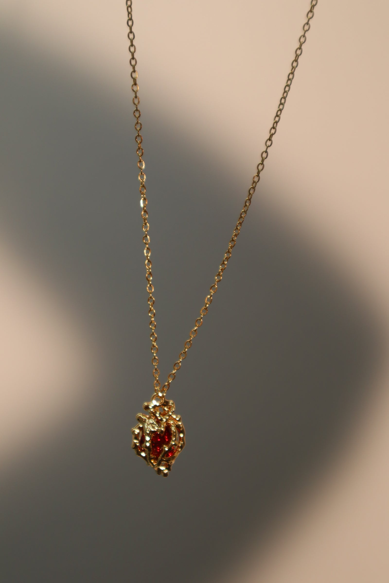 - 18K real gold plated pendant + stainless steel chain + well-cut zirconia red stone