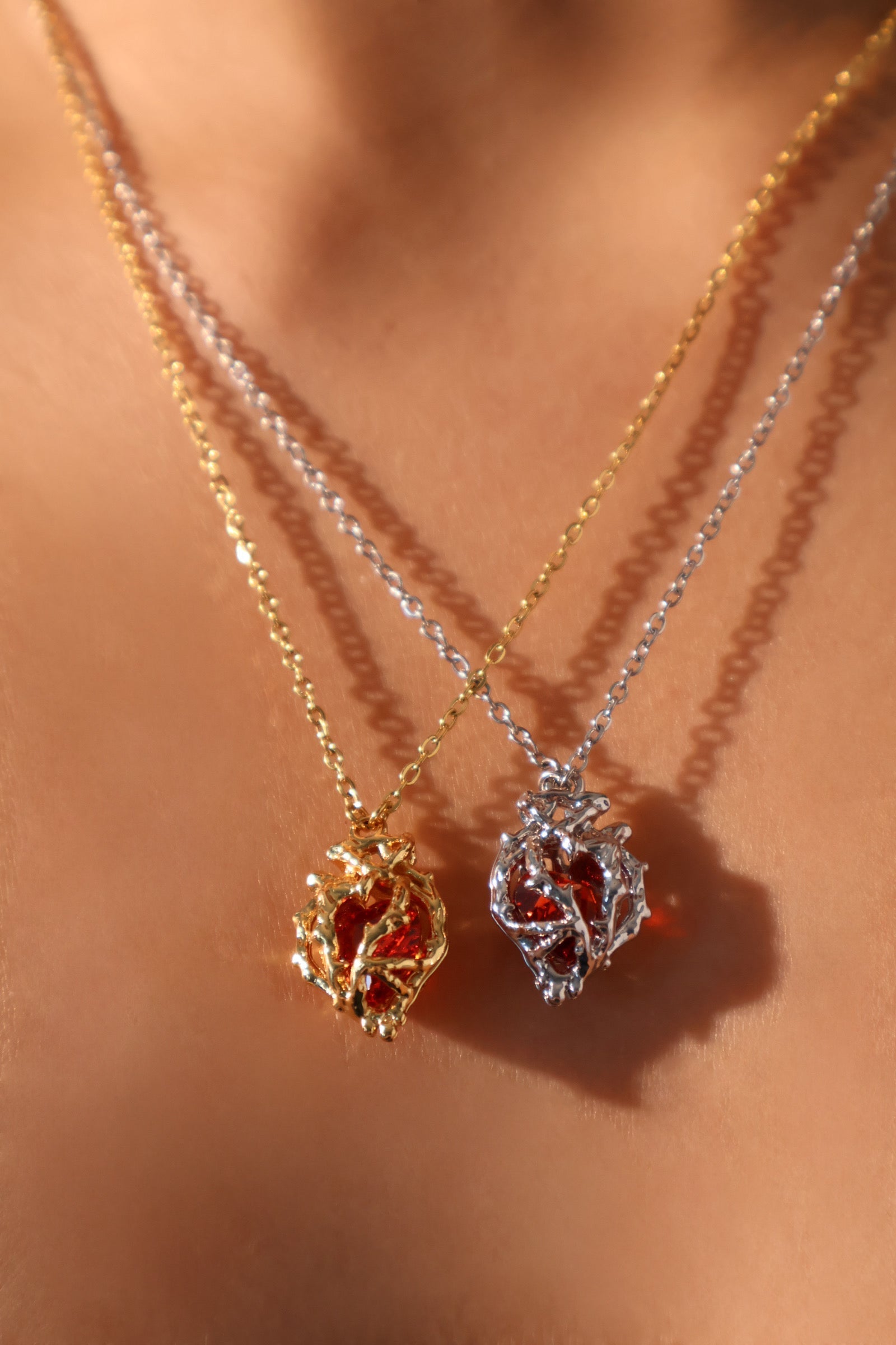 Flicker goodbye to dullness and stand out in our 18K Real Gold Plated Heart Necklace. With the proper lighting, the zirconia red stone adds a pop of shine to your ensemble. This unique necklace makes your outfit stand out and is also a great gift for her or him.