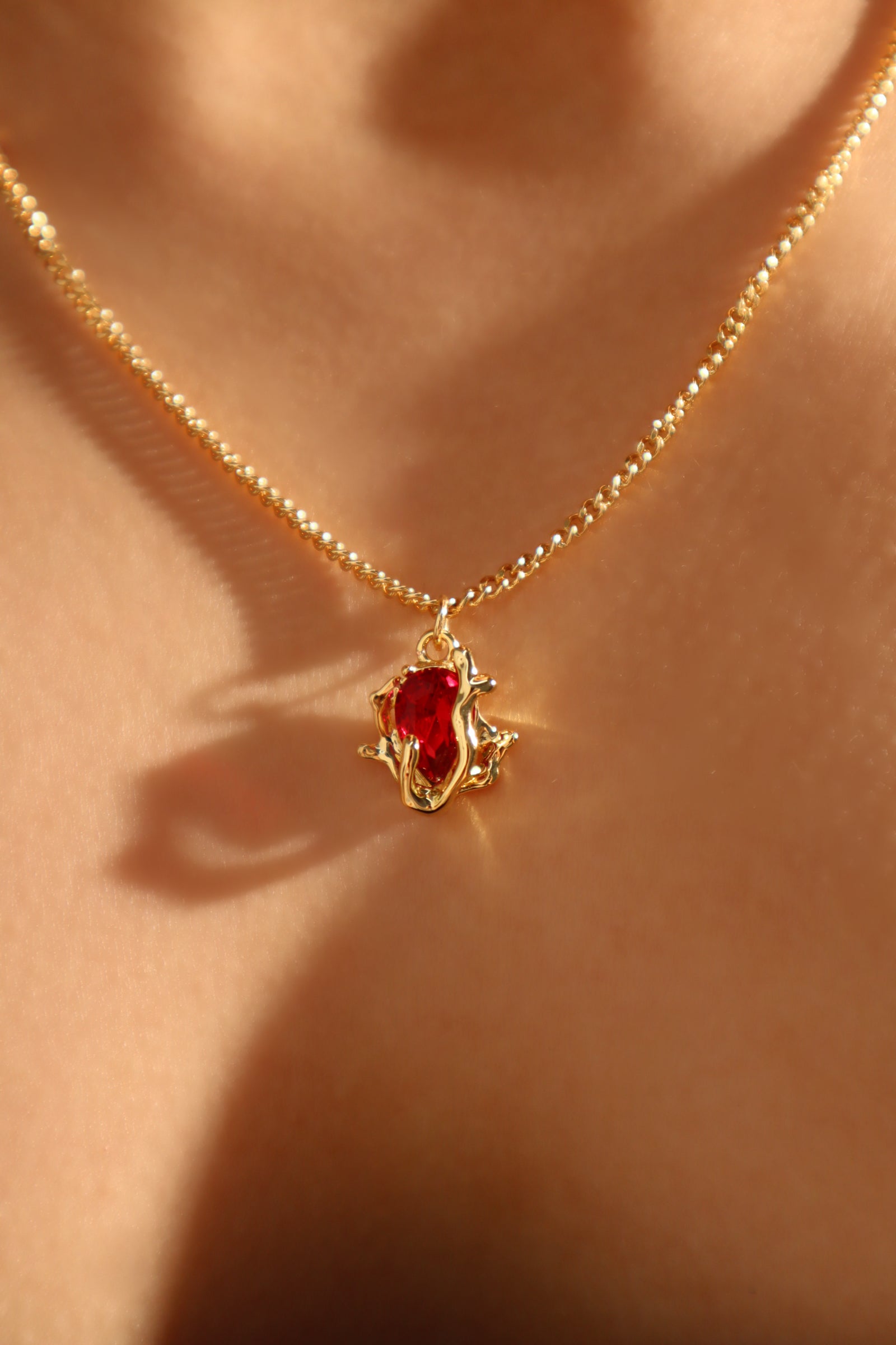 Flicker goodbye to dullness and stand out in our 18K Real Gold Plated Red Rose Necklace. With the proper lighting, the zirconia red gemstone adds a pop of shine to your ensemble. This unique necklace makes your outfit stand out and is also a great gift for her or him.