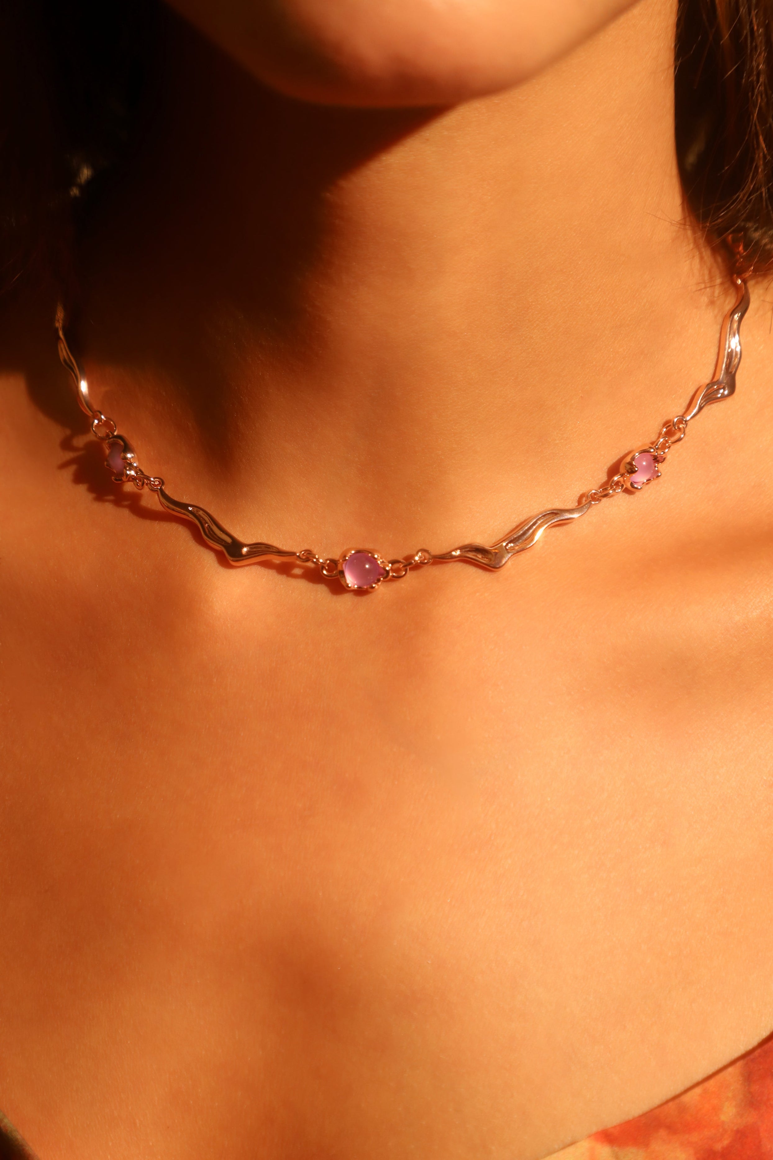 18K Rose Gold Plated Multi Purple Opal Wave Necklace