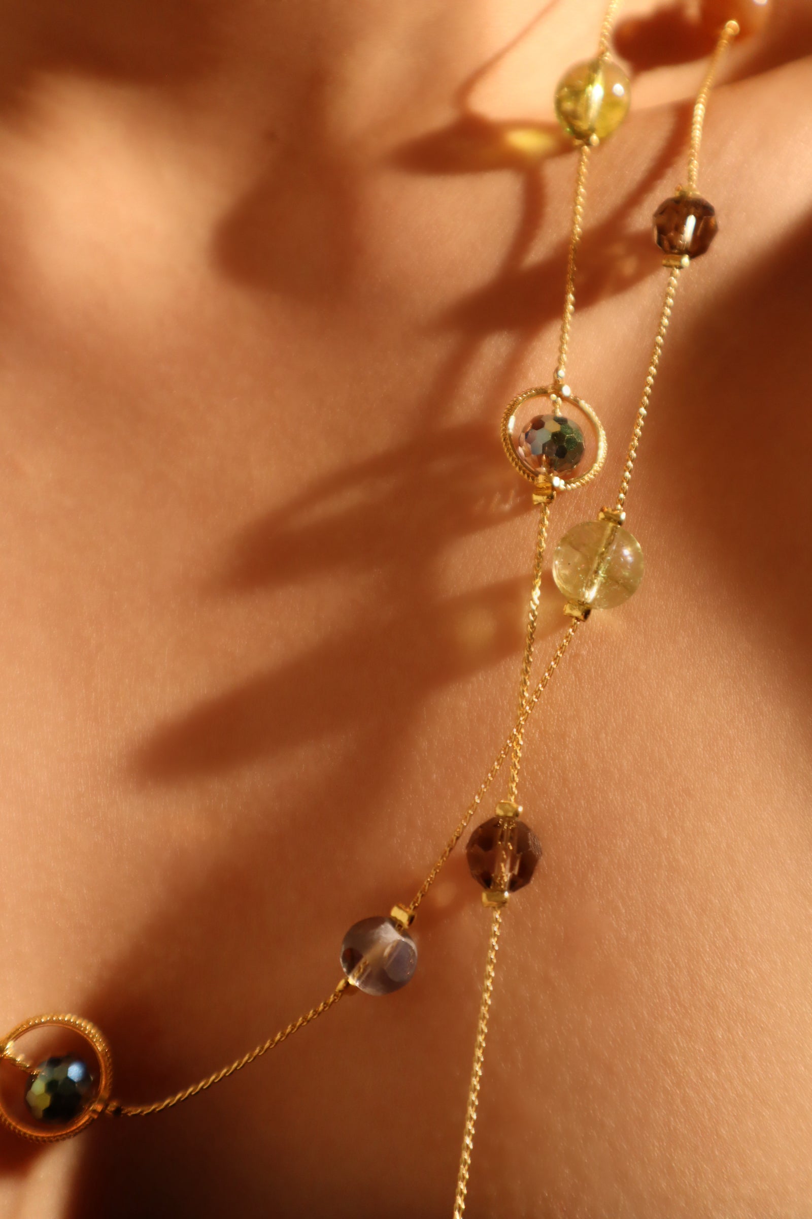 Flicker goodbye to dullness and stand out in our Gold Plated Color Gem Saturn Layer Necklace. With the proper lighting, the color acrylics add a pop of shine to your ensemble. This unique necklace makes your outfit stand out and is also a great gift for her or him.