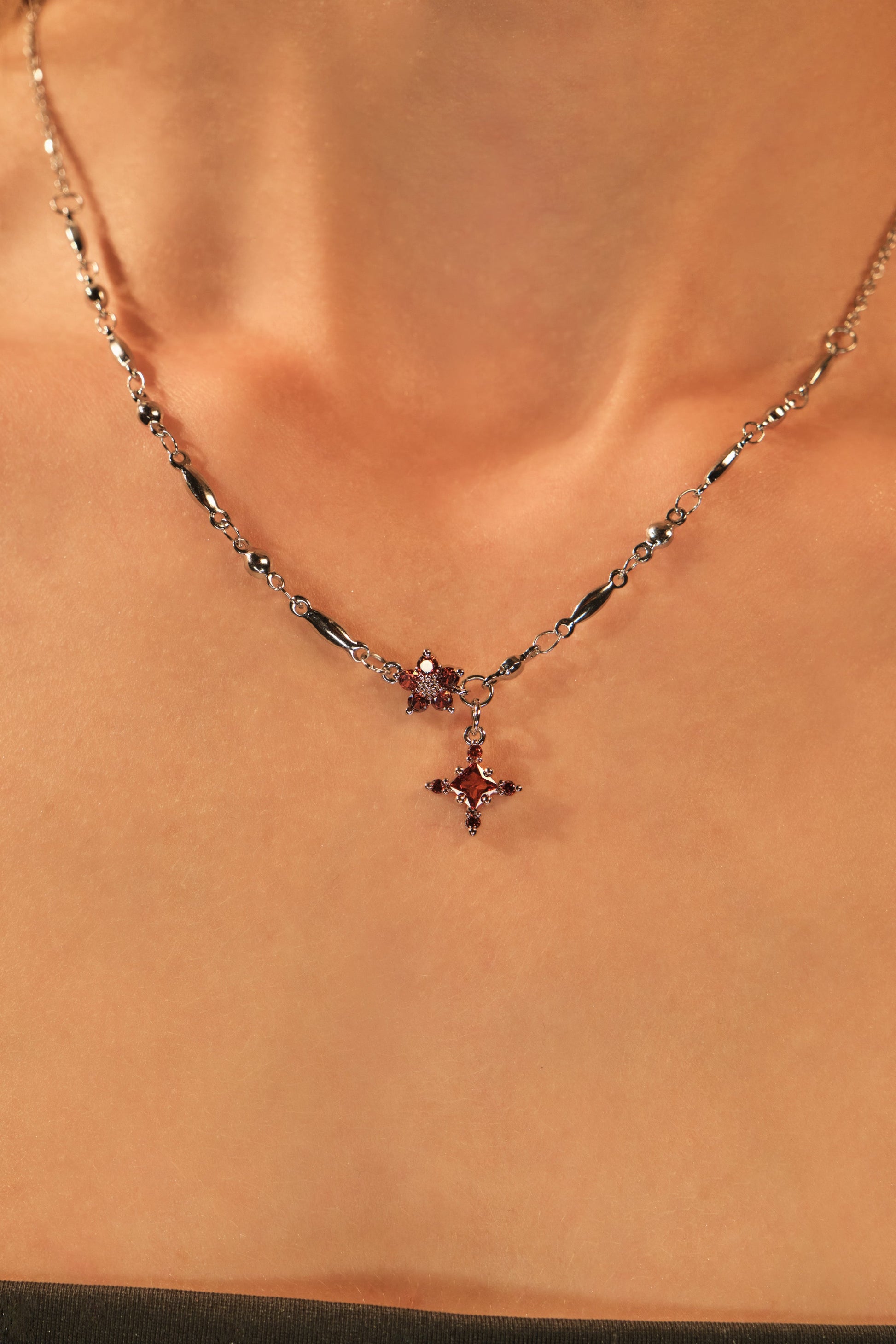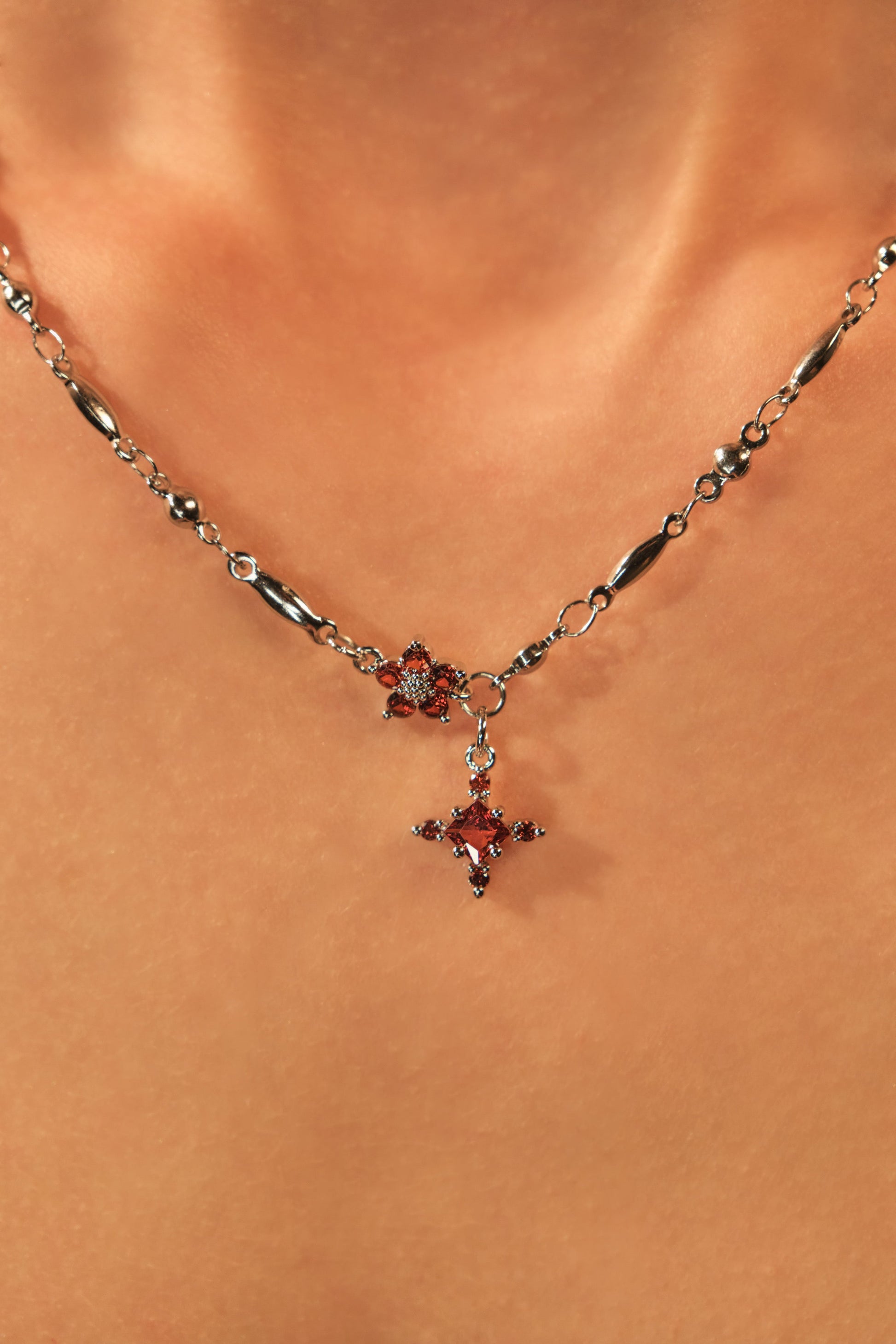 Flicker goodbye to dullness and stand out in our Platinum Plated Garnet Diamond Cross Necklace. With the proper lighting, the zirconia gemstones add a pop of shine to your ensemble. This unique necklace makes your outfit stand out and is also a great gift for her or him.