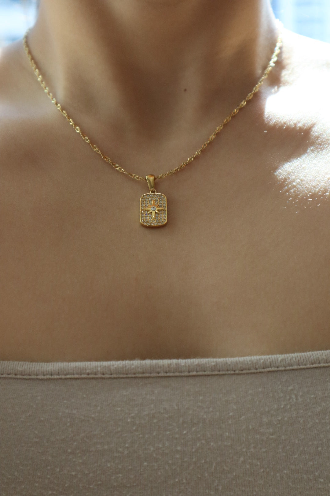 Flicker goodbye to dull and stand out in our 18K Gold Stainless Steel Star Necklace. With the right lighting, our zirconia diamonds add a subtle pop of shine to your ensemble. This dainty, simple necklace makes the perfect layering chain and an even better gift for her.