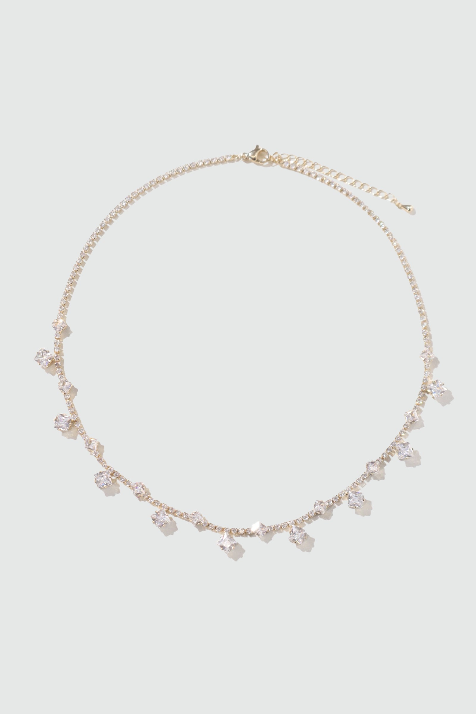 Flicker goodbye to dullness and stand out in our 14K Real Gold Plated Multi Diamond Necklace. With the proper lighting, the zirconia diamonds add a pop of shine to your ensemble. This unique necklace makes your outfit stand out and is also a great gift for her or him.