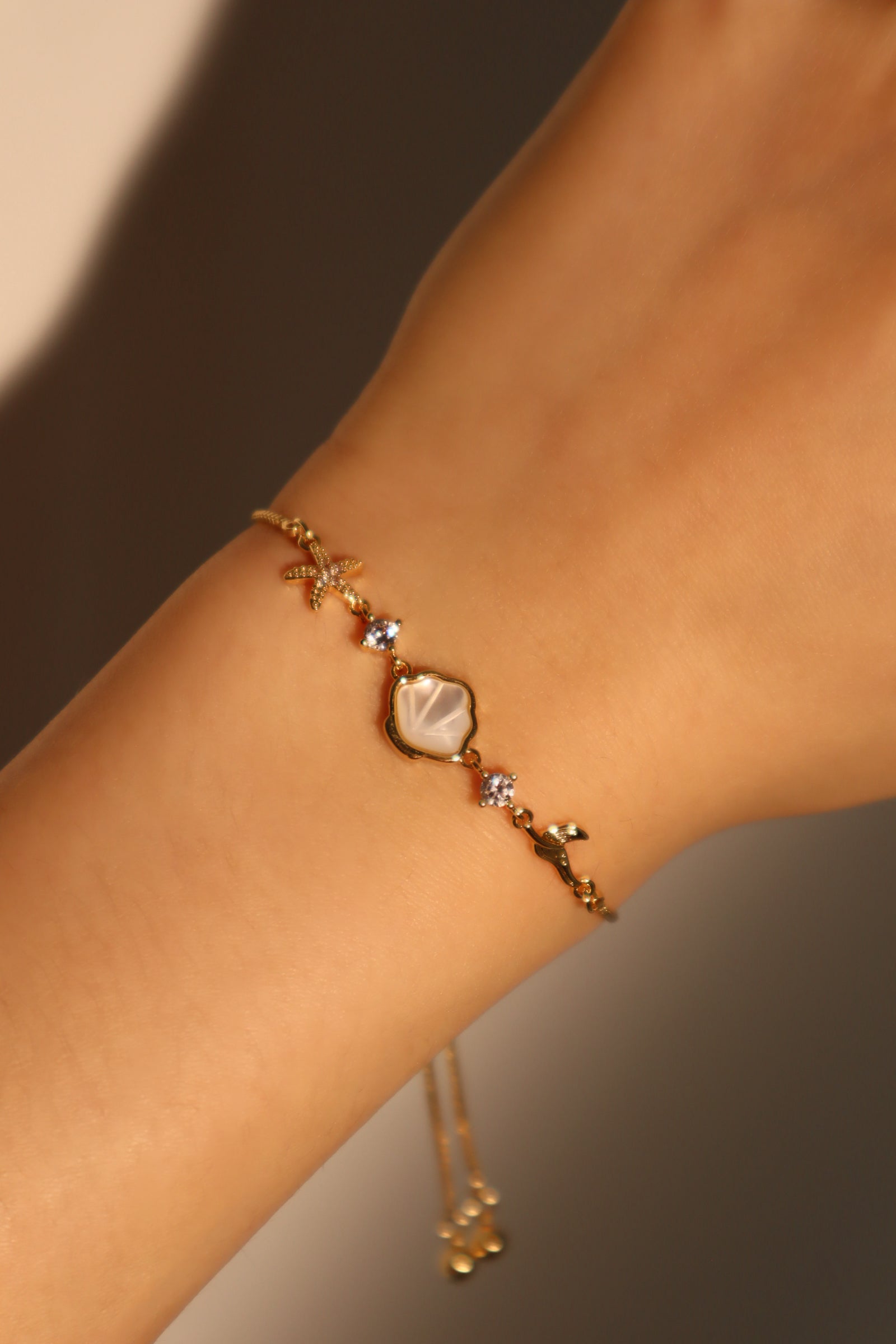 Flicker goodbye to dullness and stand out in our 14K Real Gold Plated Shell Starfish Bracelet. With the proper lighting, the natural shell adds a pop of shine to your ensemble. This unique bracelet makes your outfit stand out and is also a great gift for her or him.