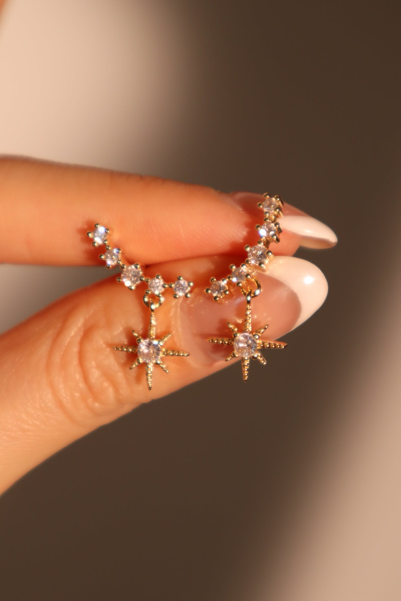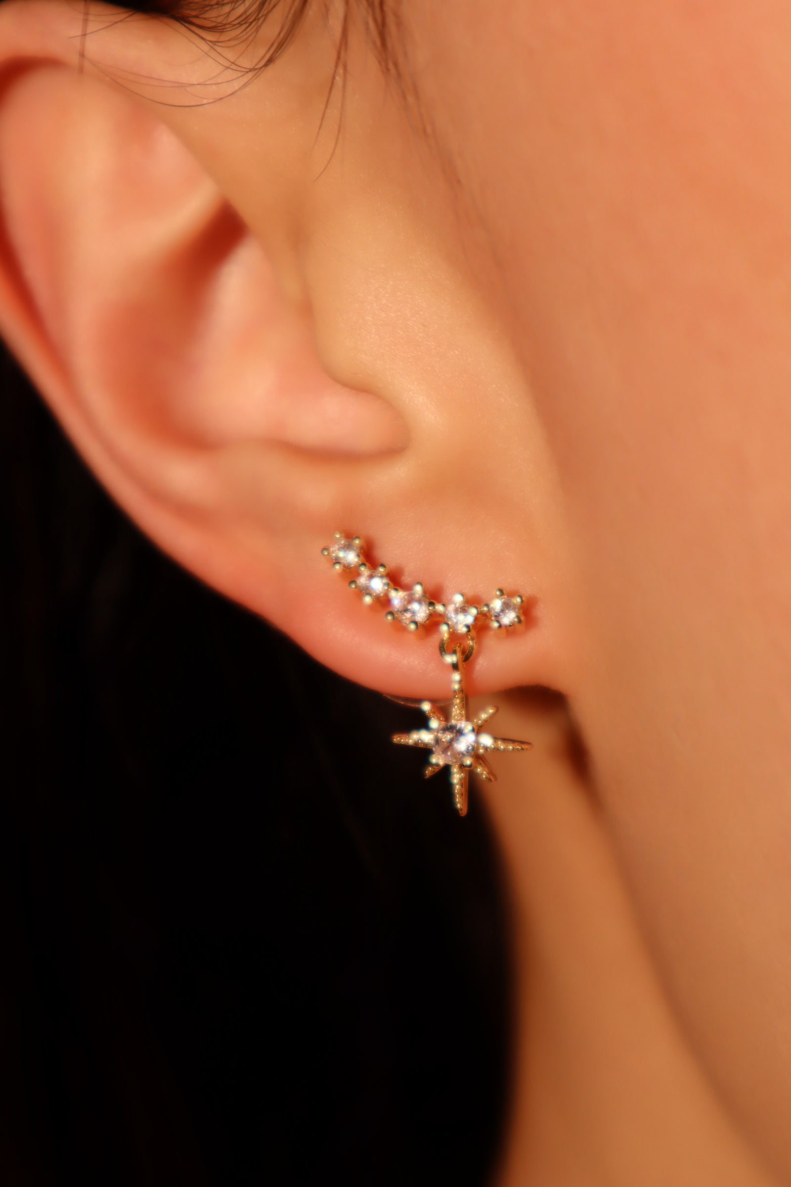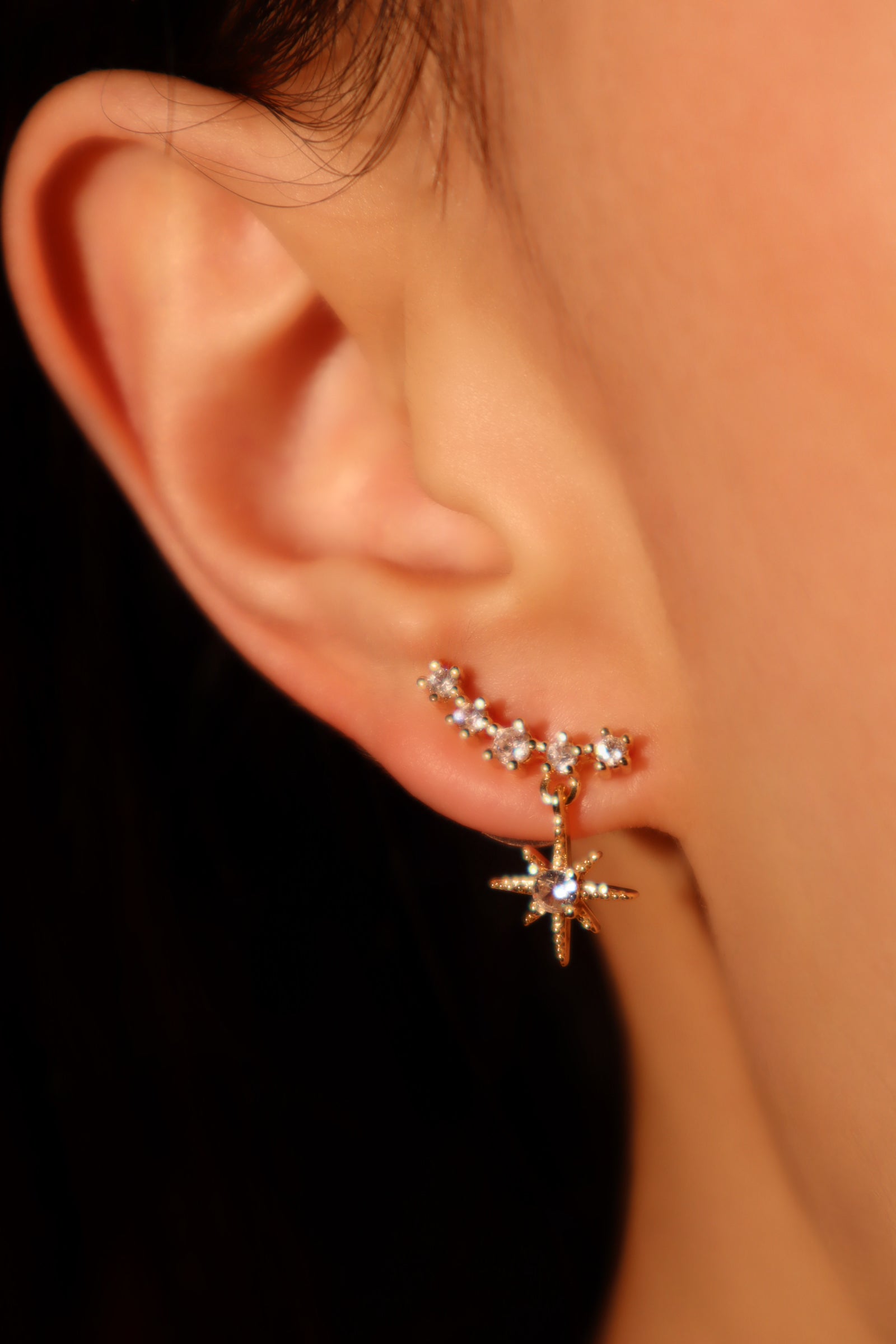 Our 14K Real Gold Plated Smiling Pole Star Earrings Earrings are ethereal. This pair of earrings is adorned with high-quality zirconia diamonds that sparkle and shine angelically. When you can’t decide on a look, match these earrings with your outfit to be your saving grace!