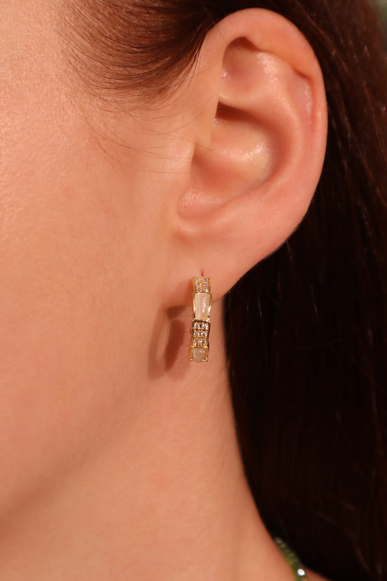 Our 14K Real Gold Plated White Opal Diamond Earrings are ethereal. This pair of earrings is adorned with high quality zirconia opals that sparkle and shine angelically. When you can’t decide on a look, match these earrings with your outfit to be your saving grace!