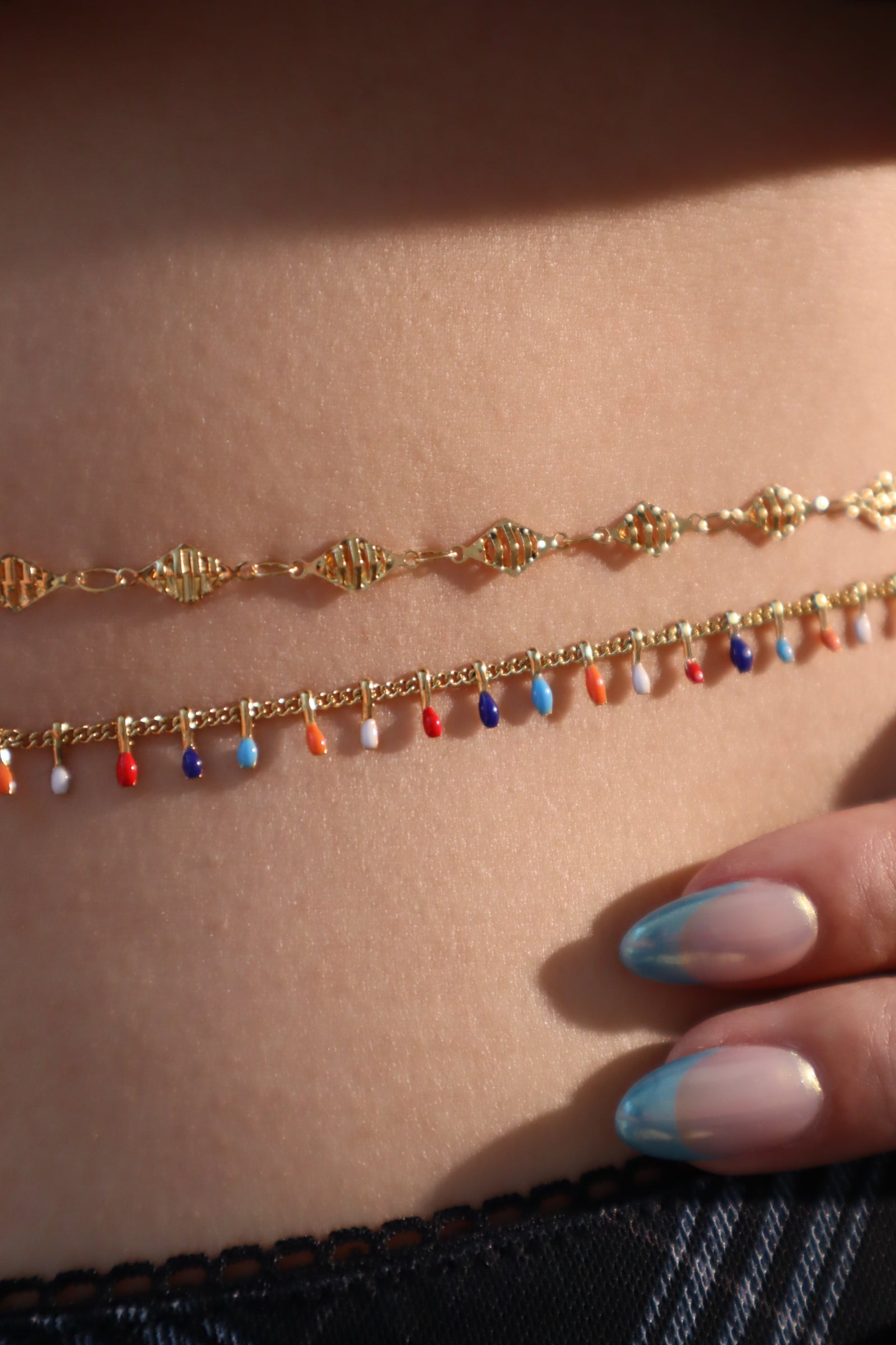 Our plated jewelry is water-resistant, tolerating light exposure like hand-washing, showering, or rain. To maintain its beauty, we recommend avoiding water exposure and contact with chemicals such as sweat, lotion and soap. Clean it with a dry, soft cloth after use and store it in the provided airtight bag. Following these steps will help keep your jewelry shining for a long time!