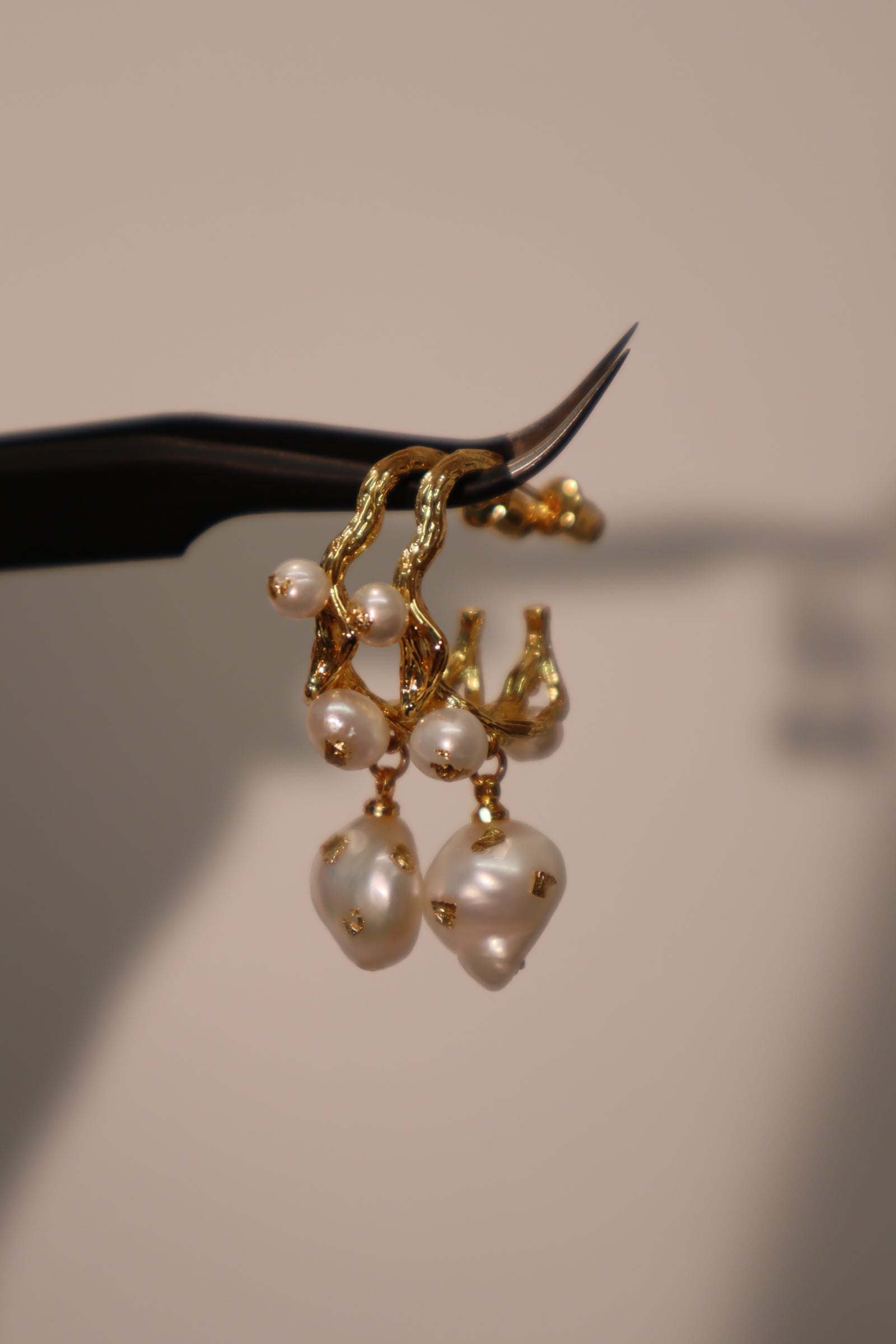 Our 18K Real Gold Foil Pearl Hoop Earrings are ethereal. This pair of earrings is adorned with high quality freshwater pearls that sparkle and shine angelically. When you can’t decide on a look, match these earrings with your outfit to be your saving grace!