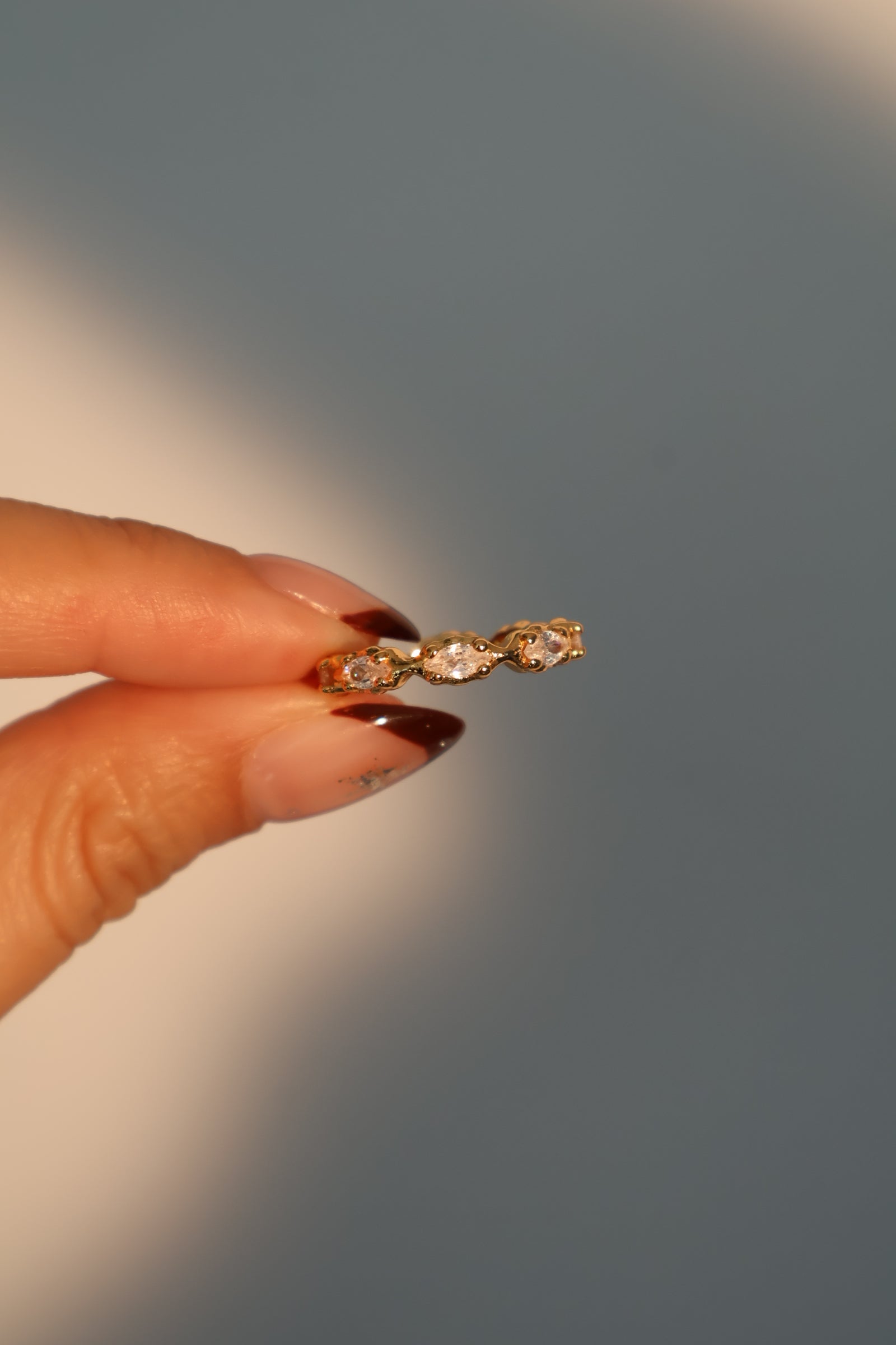 We found this cool and chic ring for you! Our rings are open sizes allowing you to mix and match to create your own unique style. The ring is made of a water-resistant band with zirconia diamonds for a quality look. This ring is perfect for everyday use...