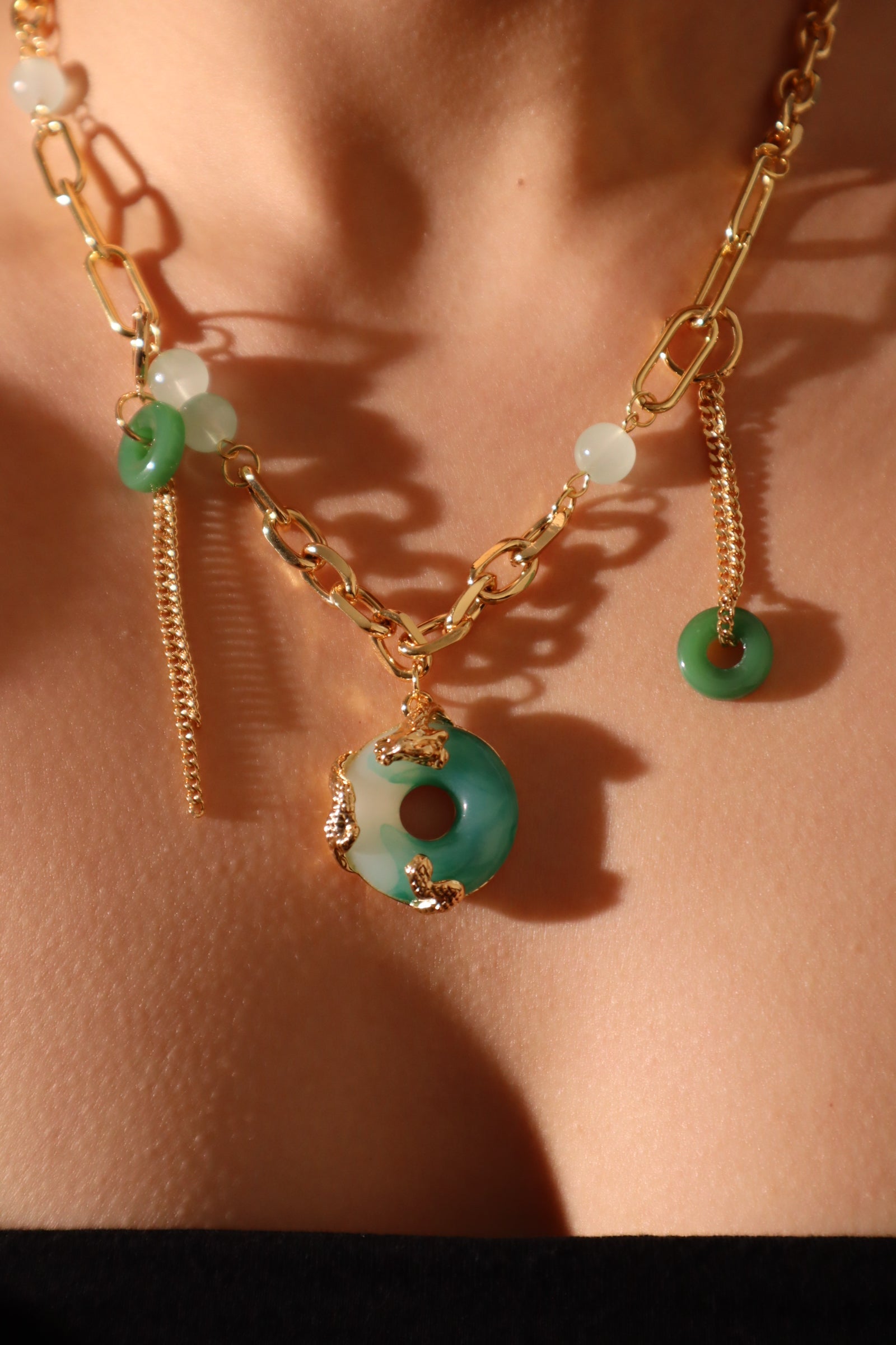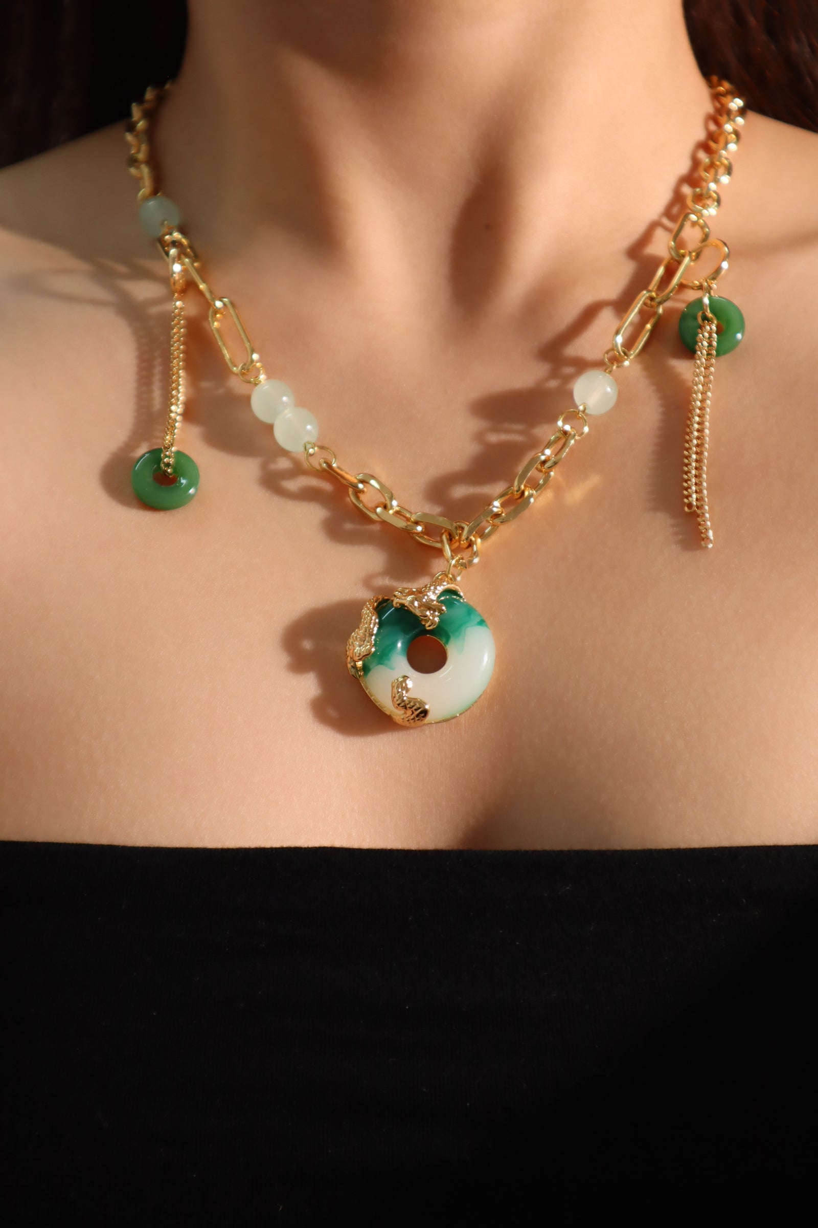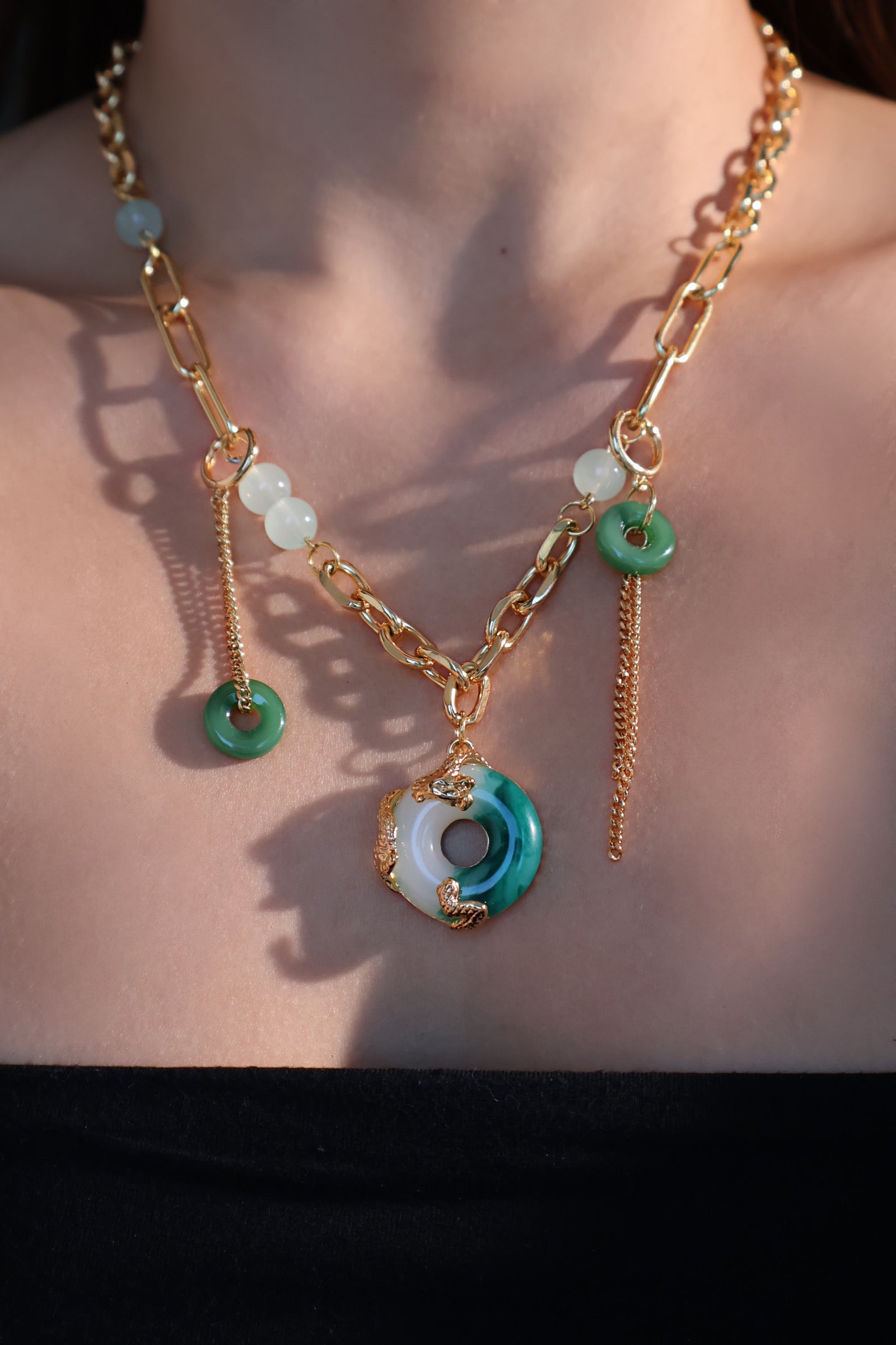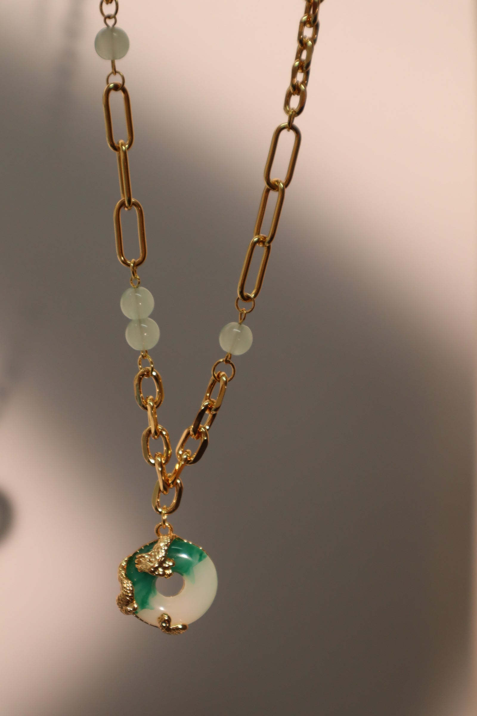 Flicker goodbye to dullness and stand out in our 18K Real Gold Plated Jade Dragon Necklace. With the proper lighting, the acrylic jades add a pop of shine to your ensemble. This unique necklace makes your outfit stand out and is also a great gift for her or him.