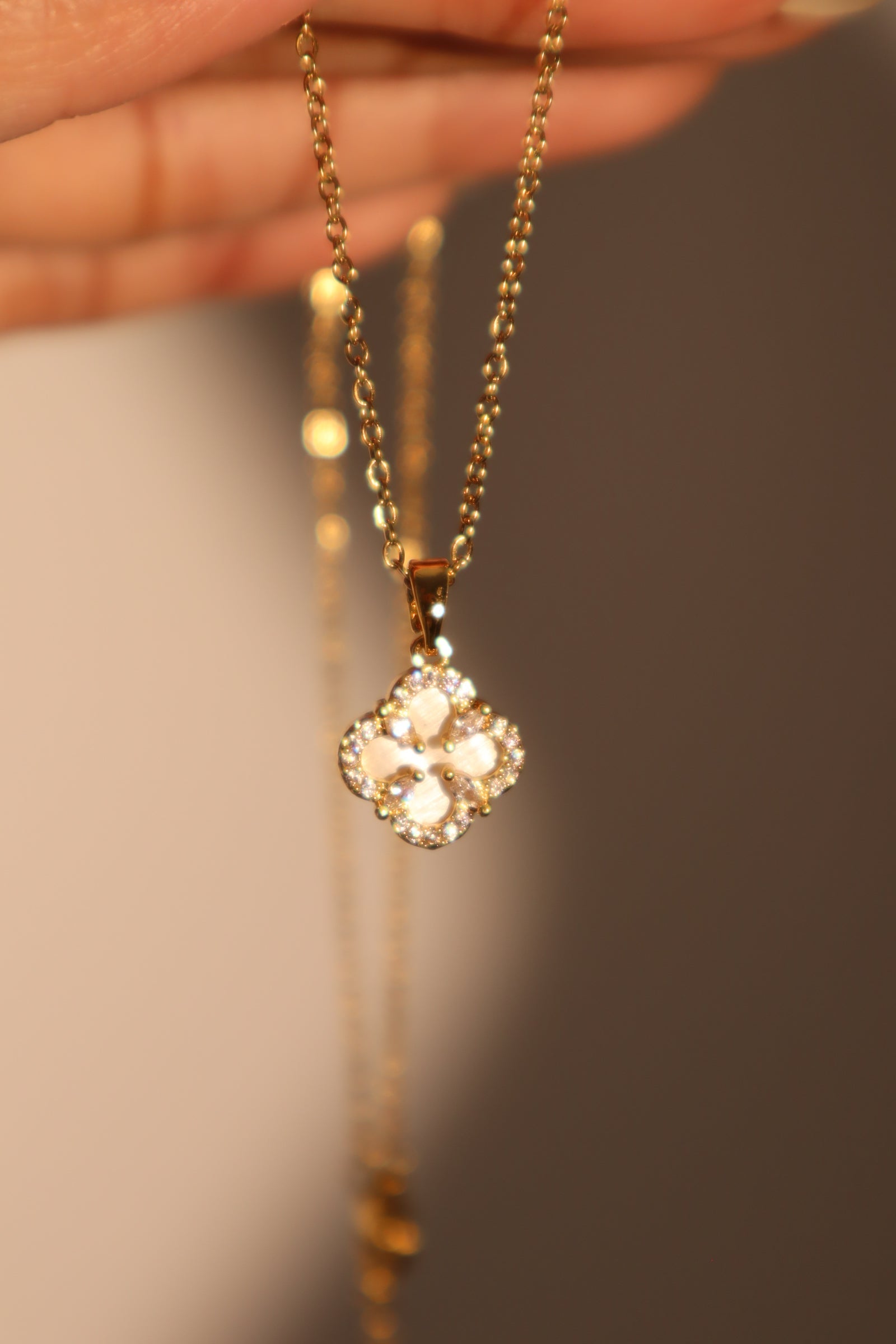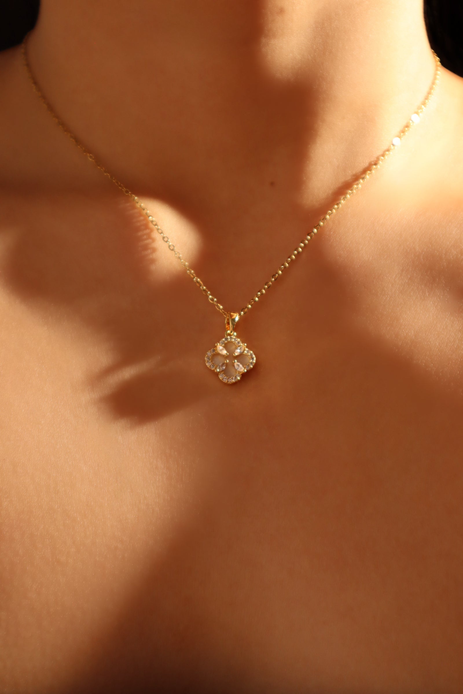 - Stainless steel chain with 18K real gold plated pendants + high quality natural shell pearls + zirconia diamonds