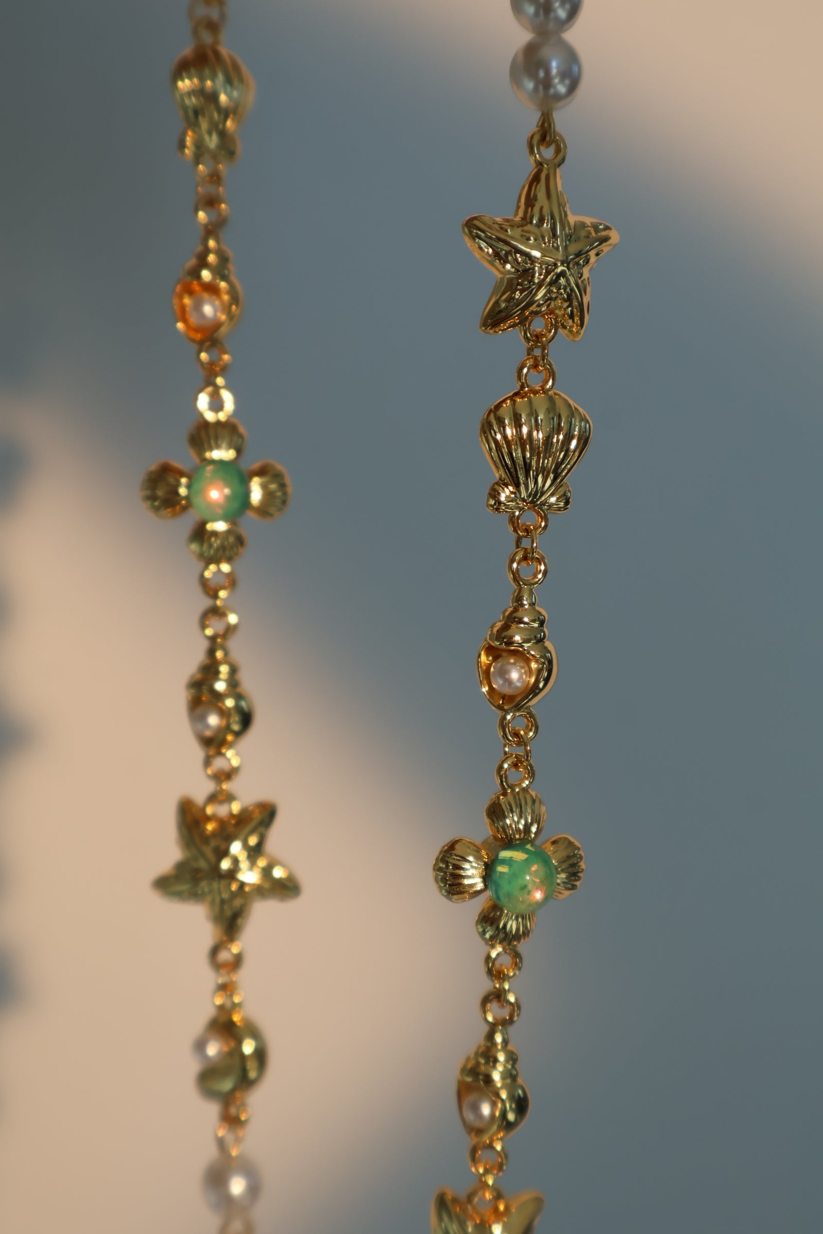 - 18K real gold plated + high quality zirconia moonstones + shell pearls
