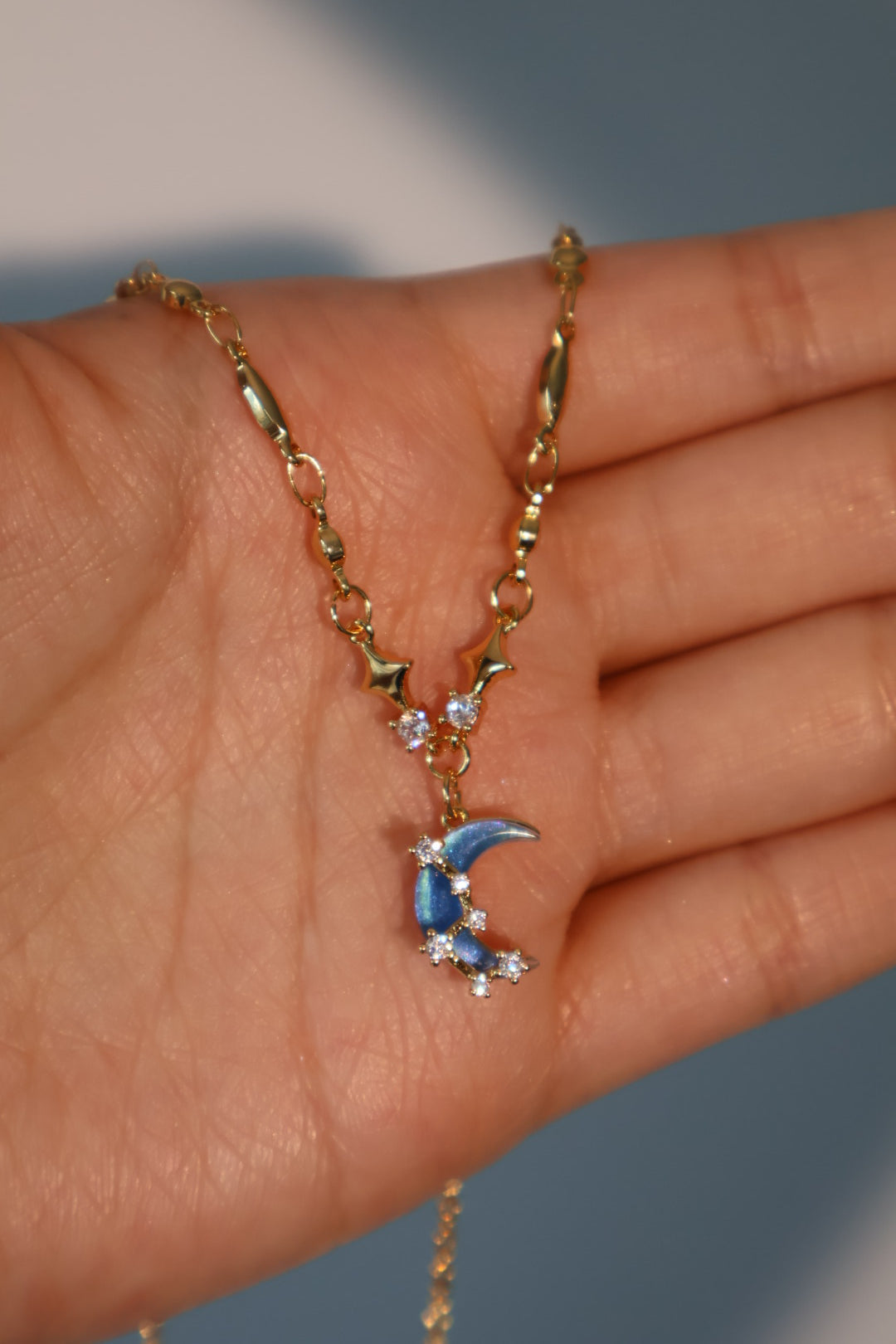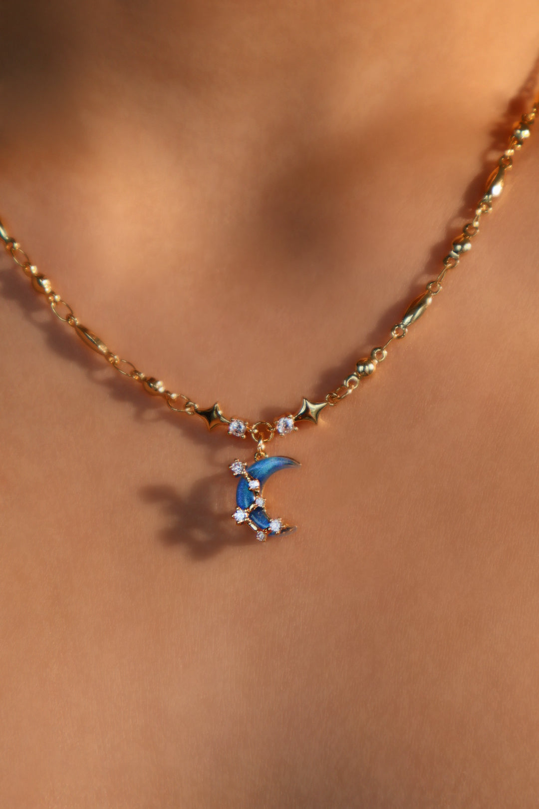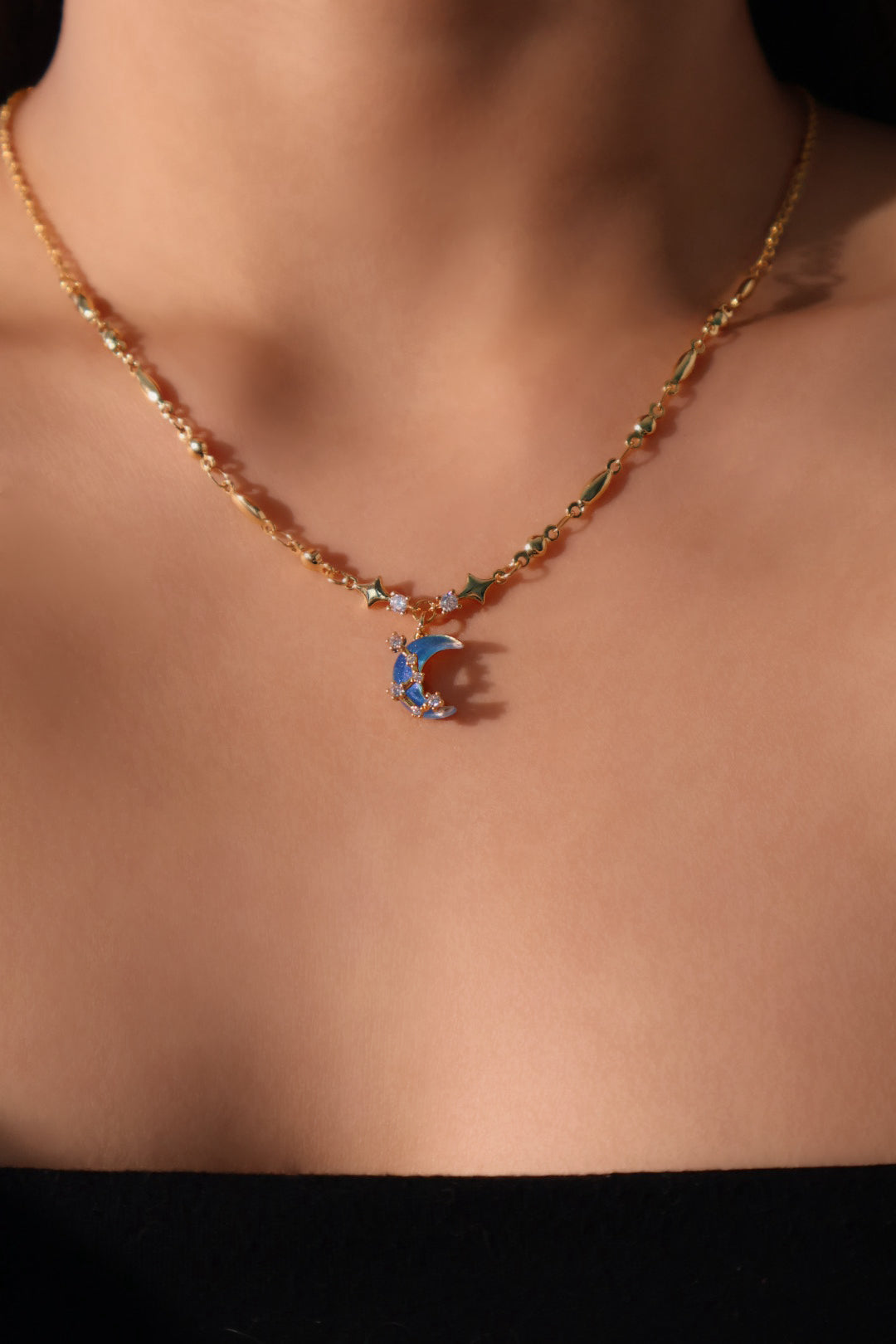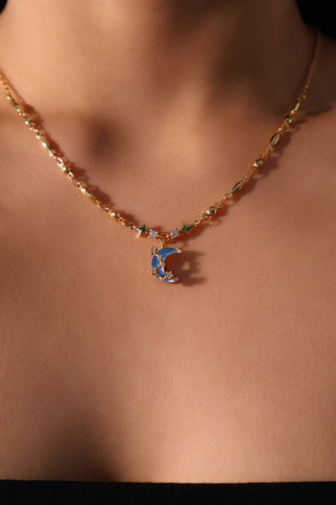 Flicker goodbye to dullness and stand out in our 18K Real Gold Plated Moonstone Moon Star Necklace. With the proper lighting, the zirconia diamonds add a pop of shine to your ensemble. This unique necklace makes your outfit stand out and is also a great gift for her or him.