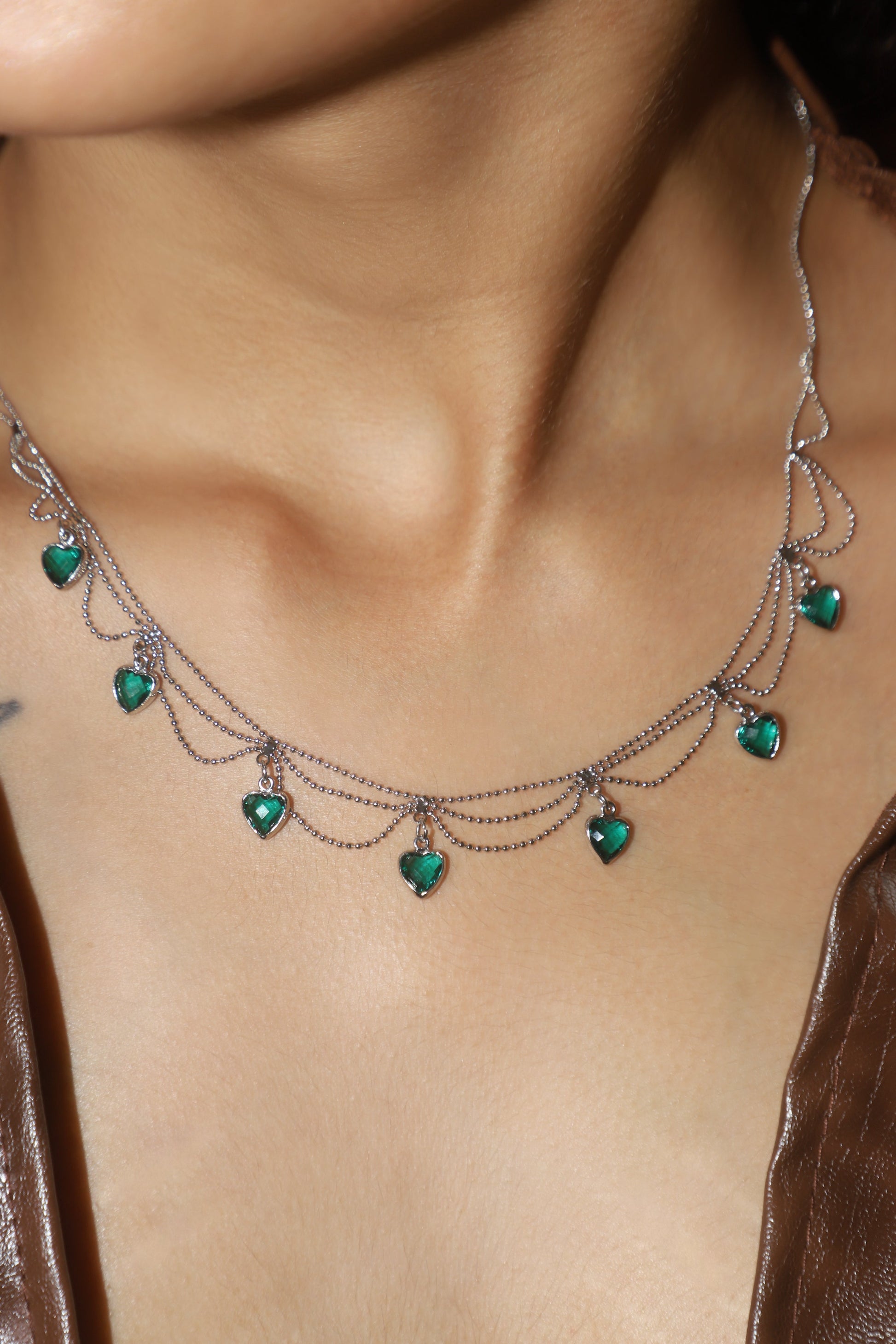 Flicker goodbye to dullness and stand out in our Platinum Plated Double Layer Green Heart Necklace. With the proper lighting, the zirconia green gemstones add a pop of shine to your ensemble. This unique necklace makes your outfit stand out and is also a great gift for her or him.