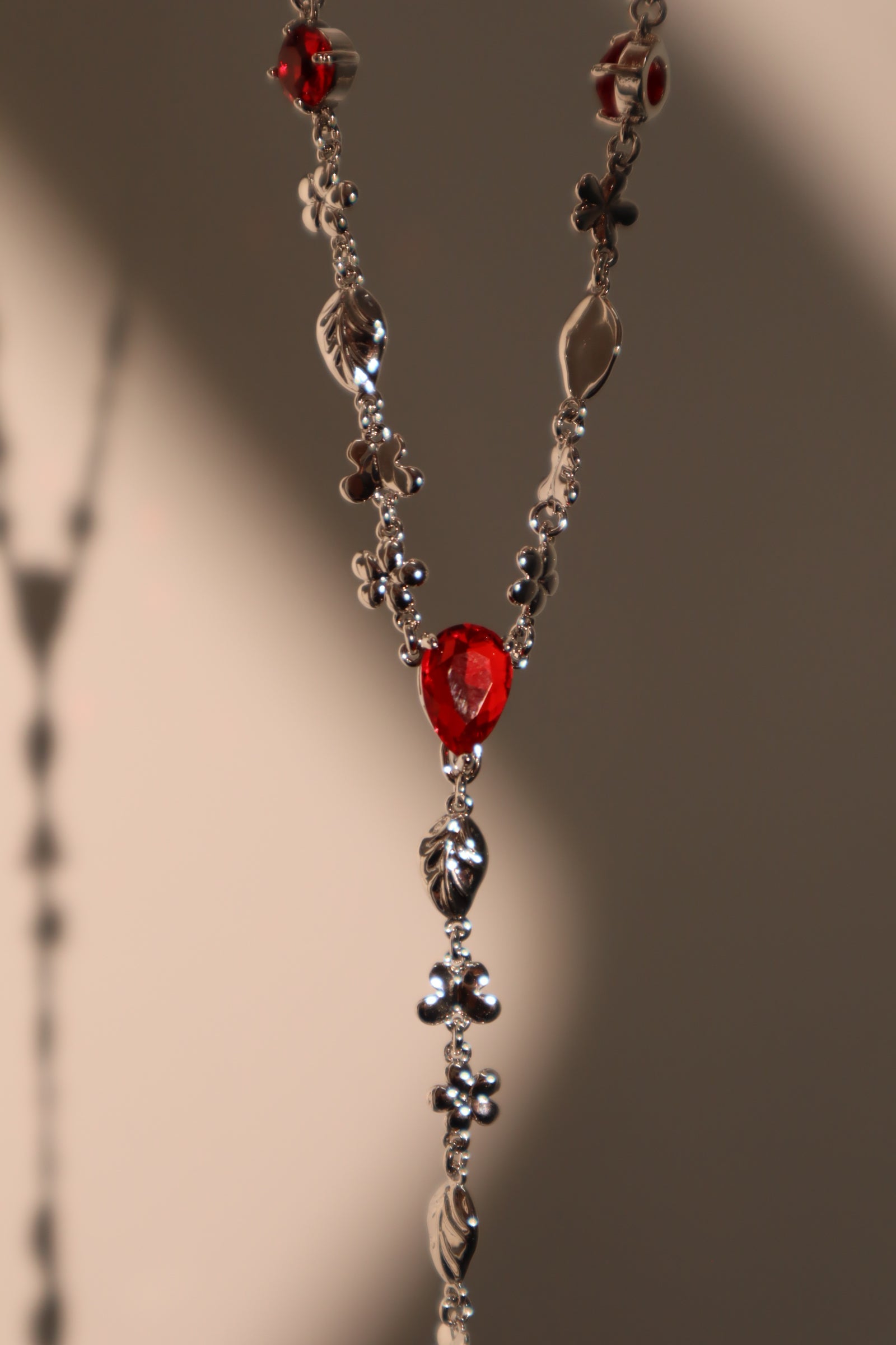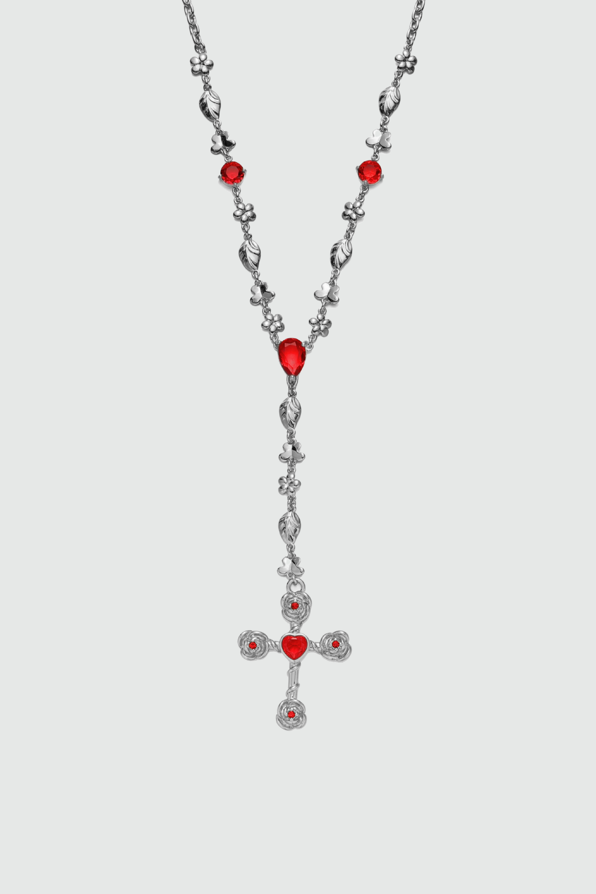 Flicker goodbye to dullness and stand out in our Platinum Plated Red Gem Cross Necklace. With the proper lighting, the zirconia red gemstones add a pop of shine to your ensemble. This unique necklace makes your outfit stand out and is also a great gift for her or him.