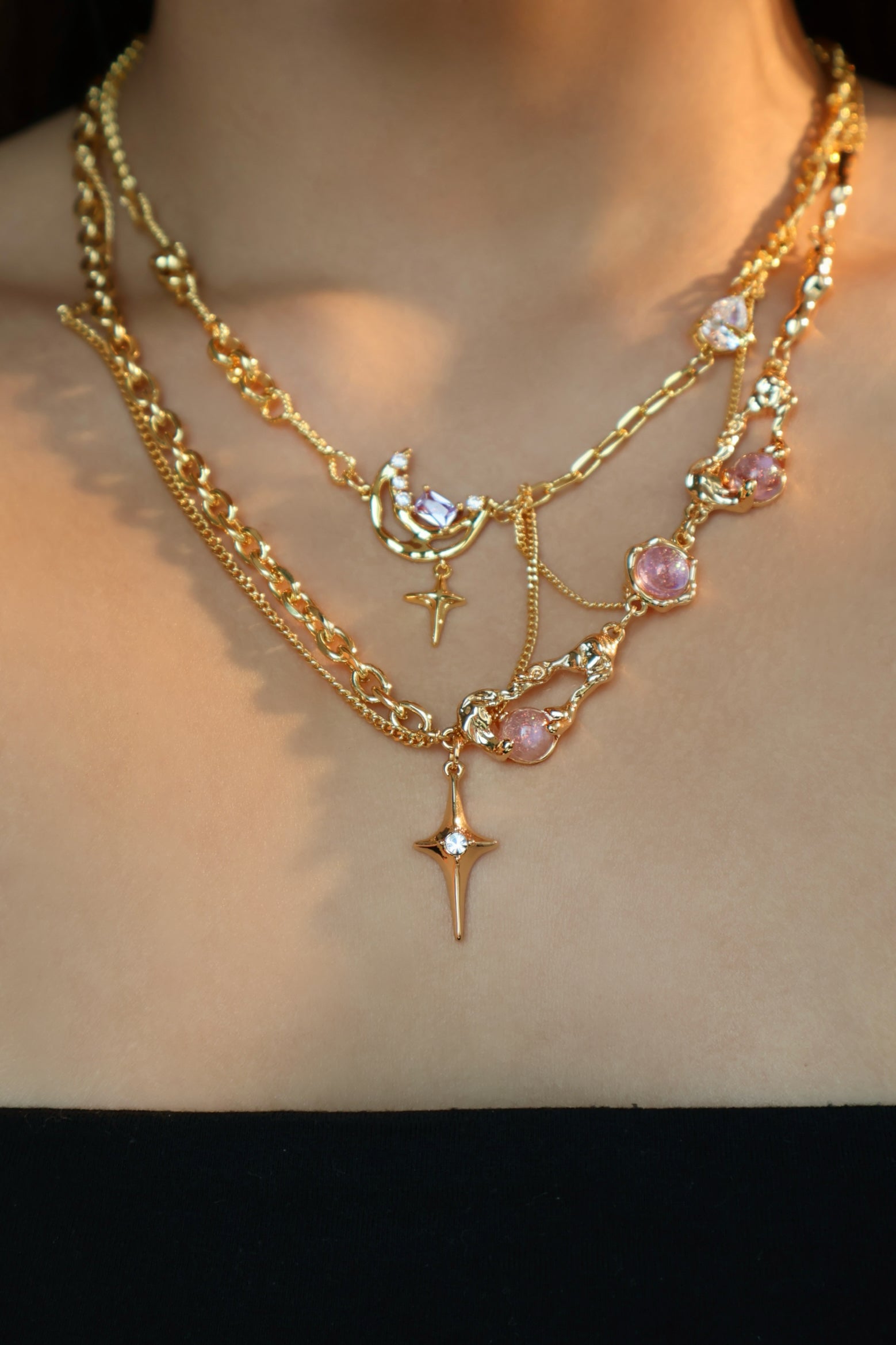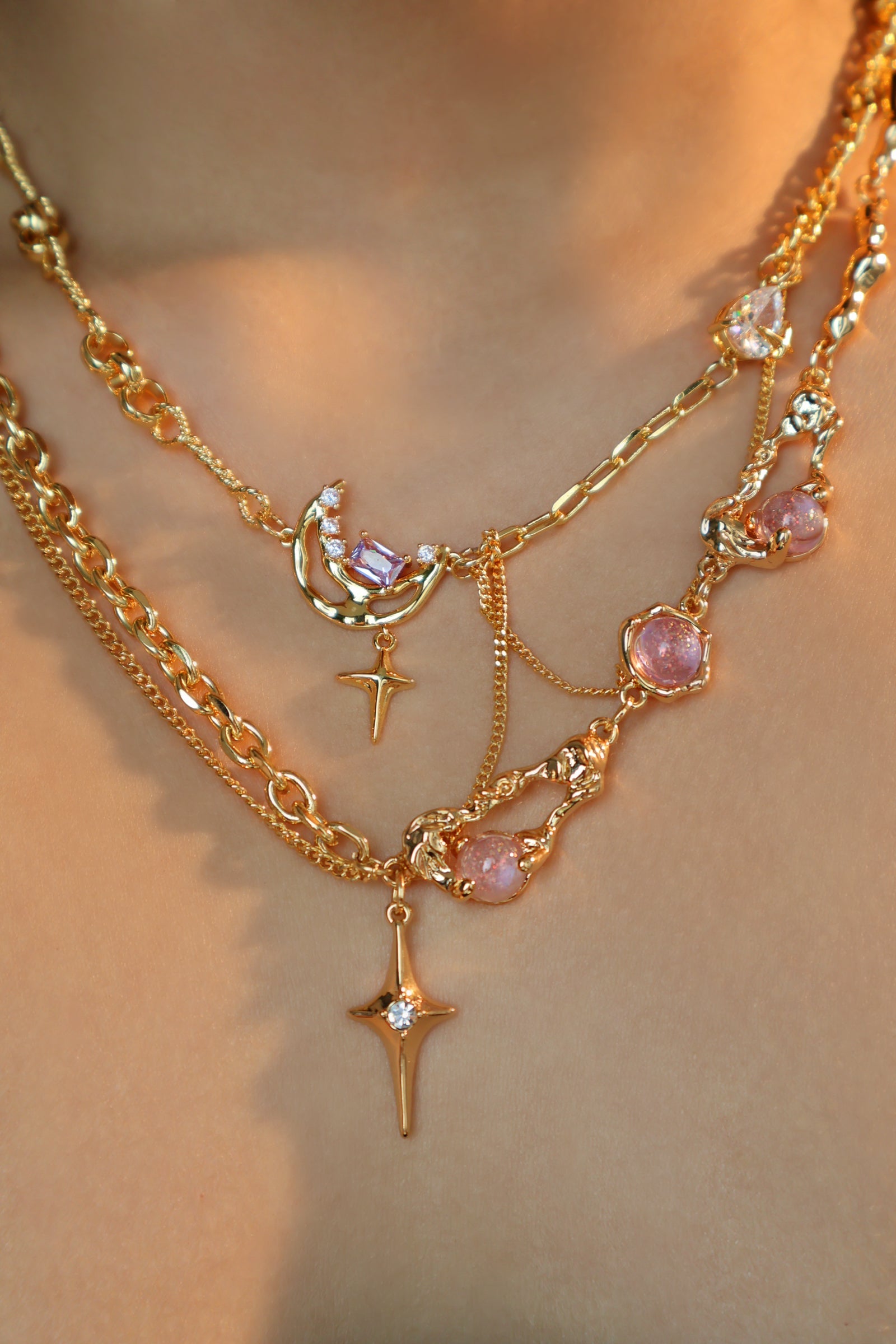 Our jewelry is crafted from high-quality materials, including hypoallergenic alloys plated in 18K or 14K gold. Each piece undergoes a meticulous quality process to ensure long-lasting shine and durability.